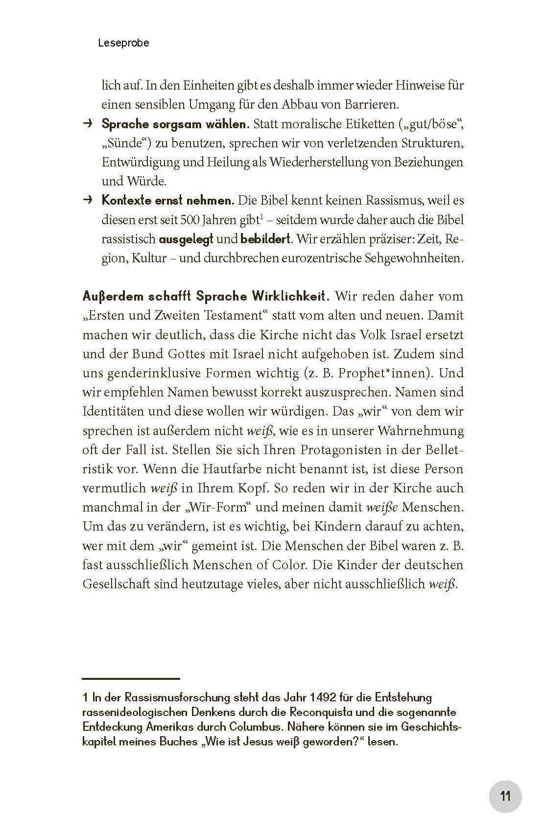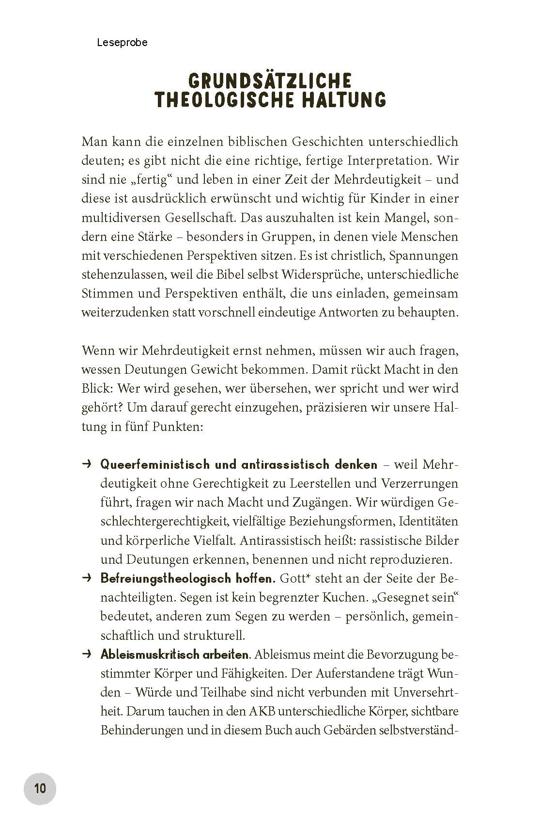Bekannte und neu zu entdeckende Erzählungen aus der Bibel werden in klarer, warmherziger Sprache vermittelt. Die Texte sind rassismus- und diversitätssensibel erzählt und greifen zentrale biblische Themen wie Nächstenliebe, Gerechtigkeit, Vertrauen, Trost und Zusammenhalt auf – ideal zum Vorlesen, Nacherzählen und Gesprächanbahnen.