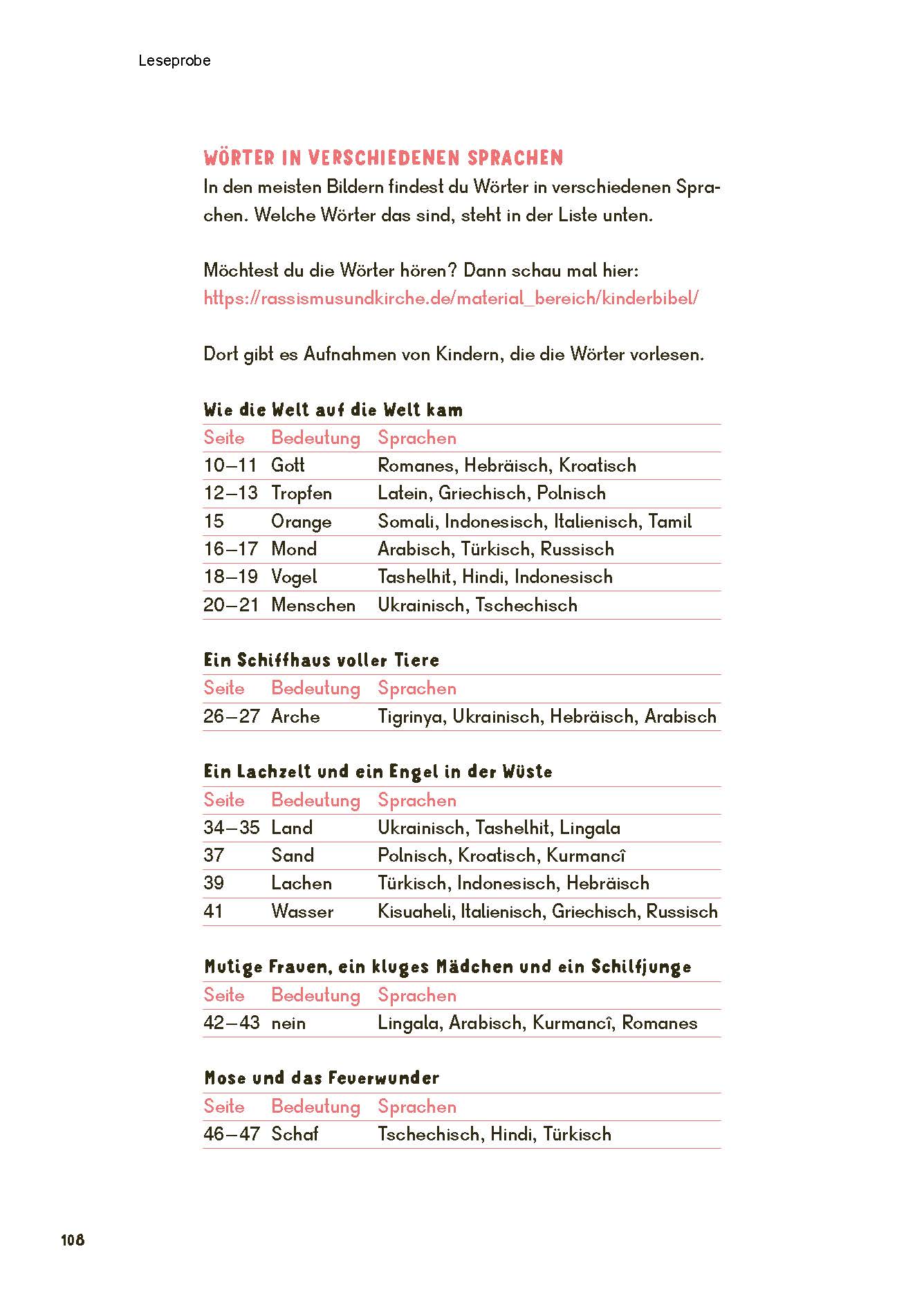 Bekannte und neu zu entdeckende Erzählungen aus der Bibel werden in klarer, warmherziger Sprache vermittelt. Die Texte sind rassismus- und diversitätssensibel erzählt und greifen zentrale biblische Themen wie Nächstenliebe, Gerechtigkeit, Vertrauen, Trost und Zusammenhalt auf – ideal zum Vorlesen, Nacherzählen und Gesprächanbahnen.