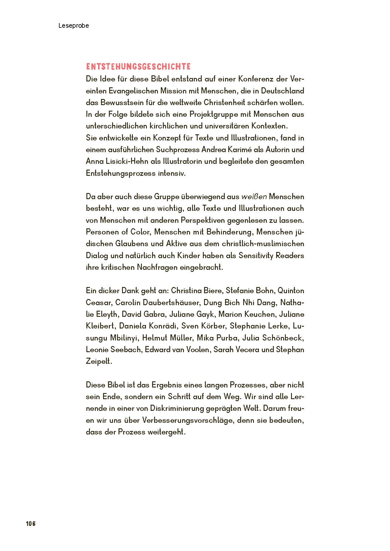 Die liebevoll gestalteten Illustrationen von Anna Lisicki-Hehn zeigen Held*innen, in denen sich alle Kinder wiederfinden können. So entsteht eine Kinderbibel, die Vielfalt sichtbar macht, Identifikation stärkt und einen weltoffenen Glauben fördert. Ein Vorwort von Sarah Vecera rahmt die Haltung des Buches theologisch und pädagogisch sensibel ein.