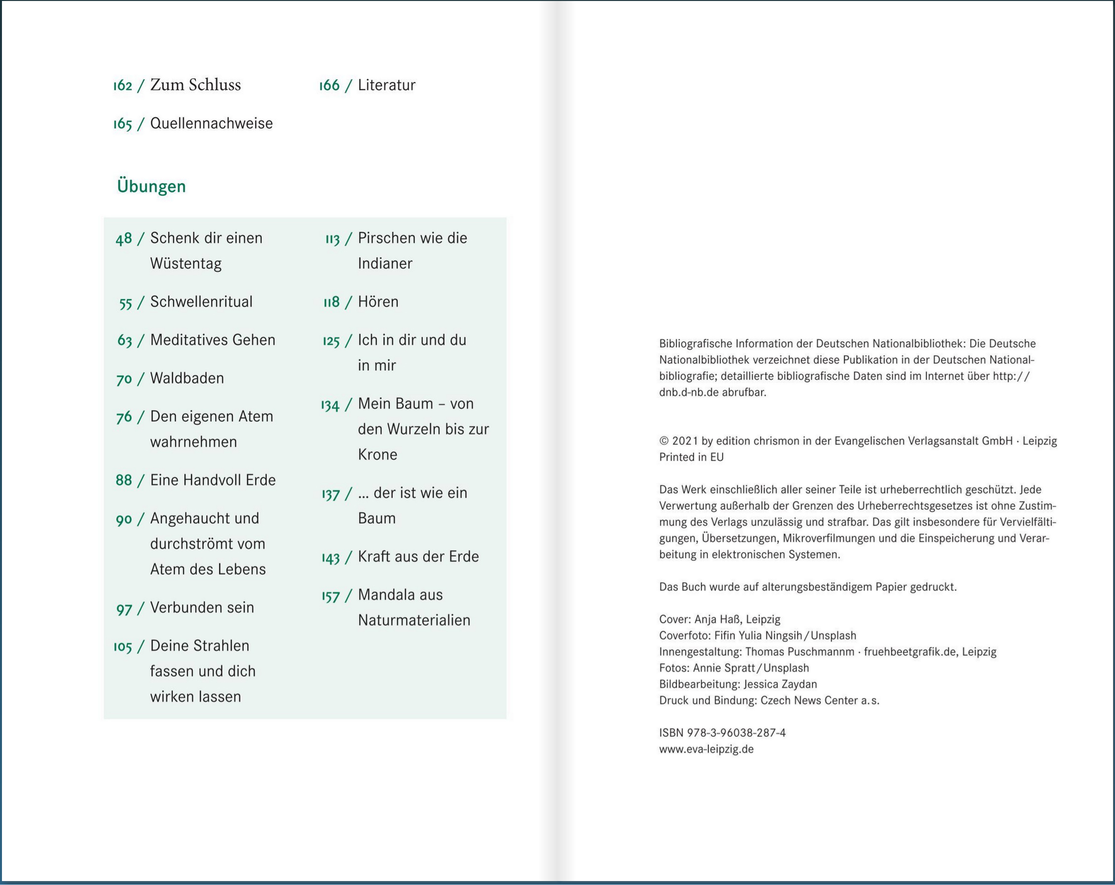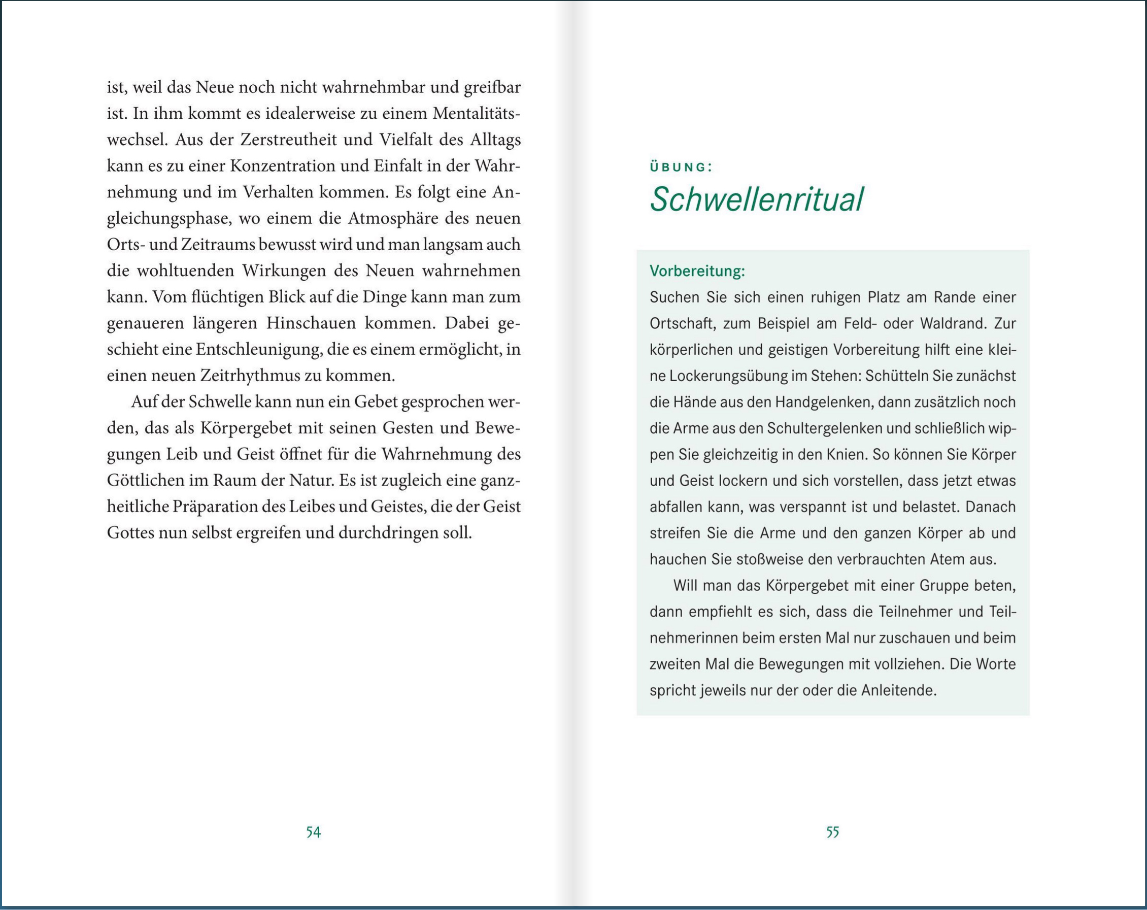 - Gebet und Meditation draußen: Kurze Gebetsformen, Stilleübungen und begleitende Meditationen.