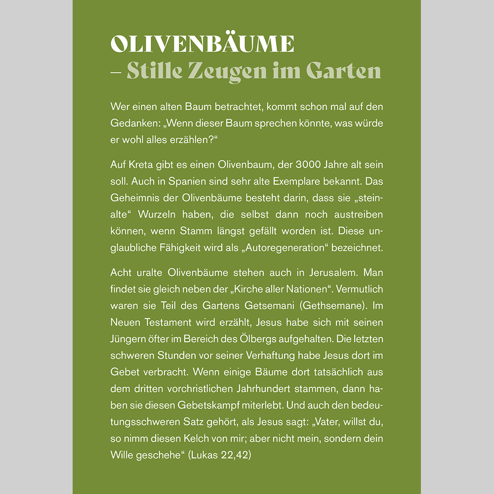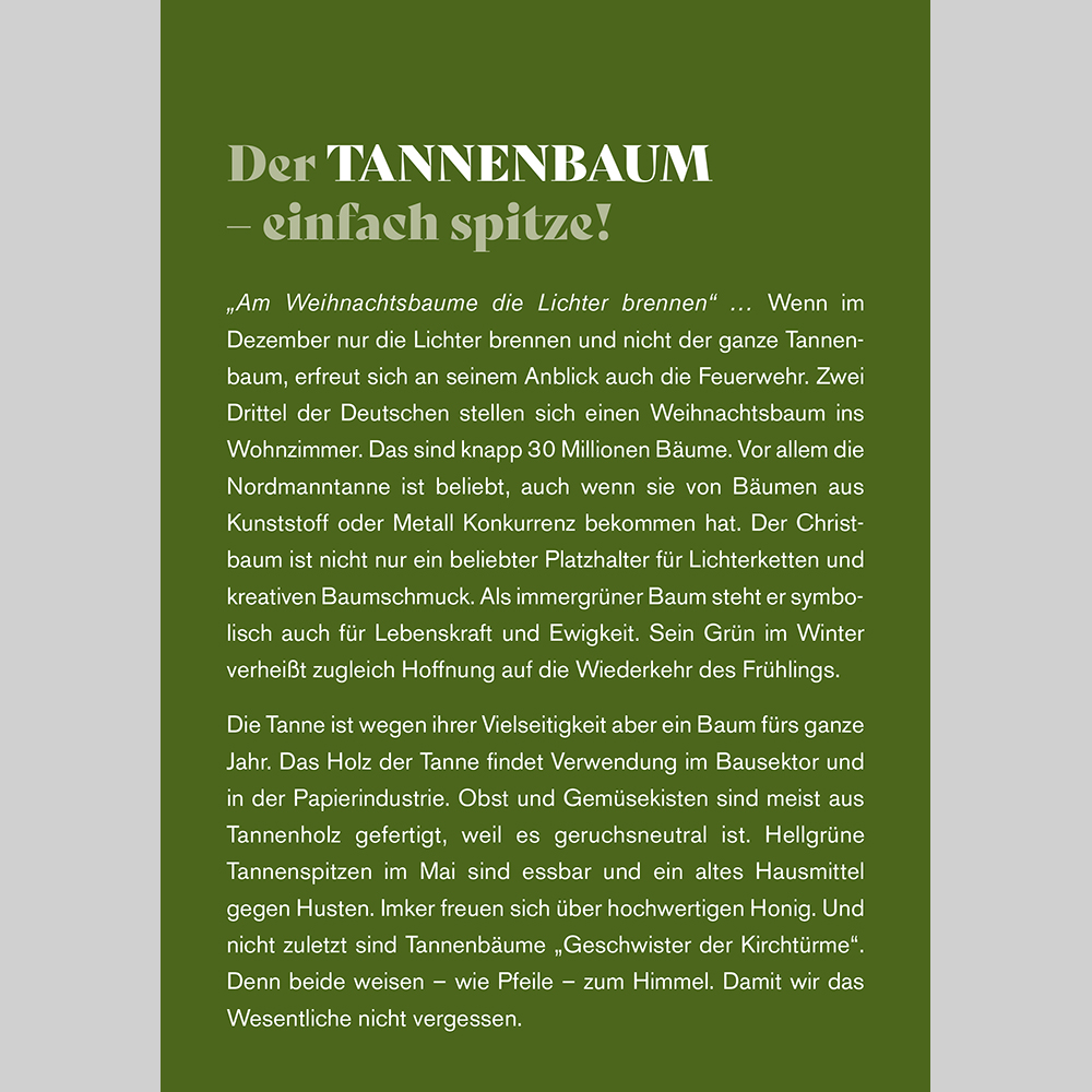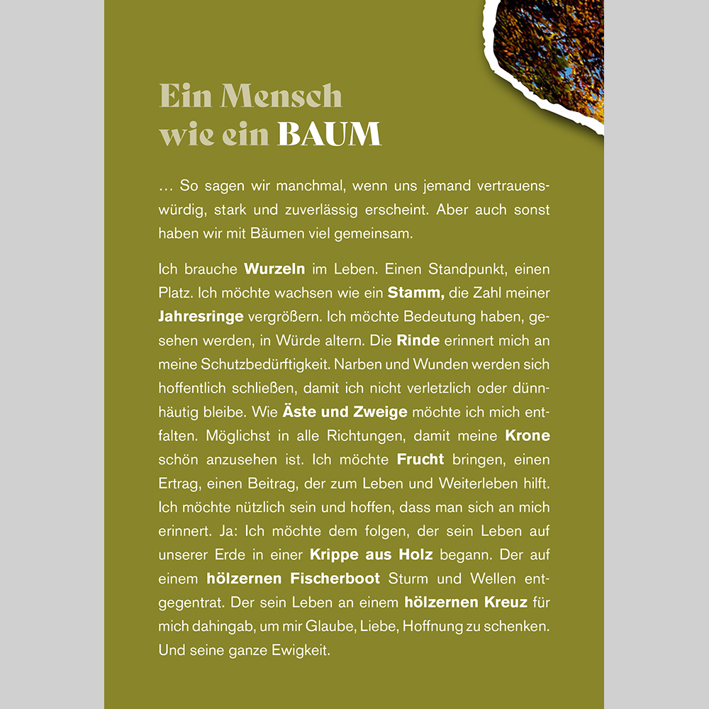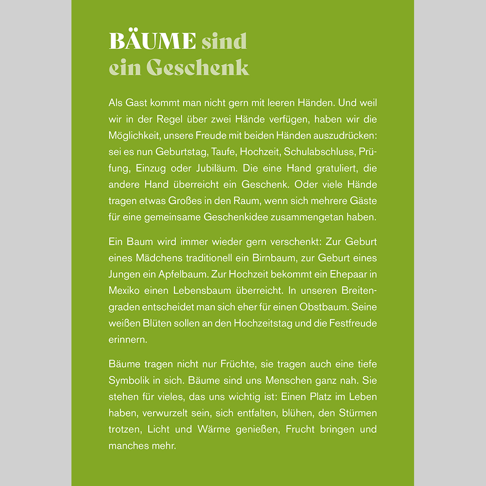 symbolischen Kraft verschiedenster Bäume - vom Apfel als Zeichen der Gesundheit bis zur Eiche als Sinnbild für Beständigkeit. Mit biblischen Bezügen,