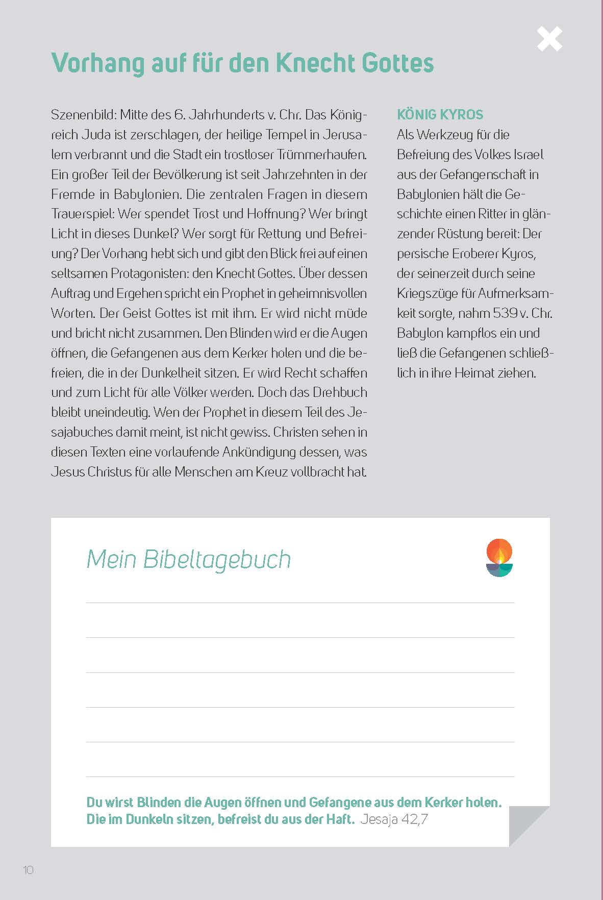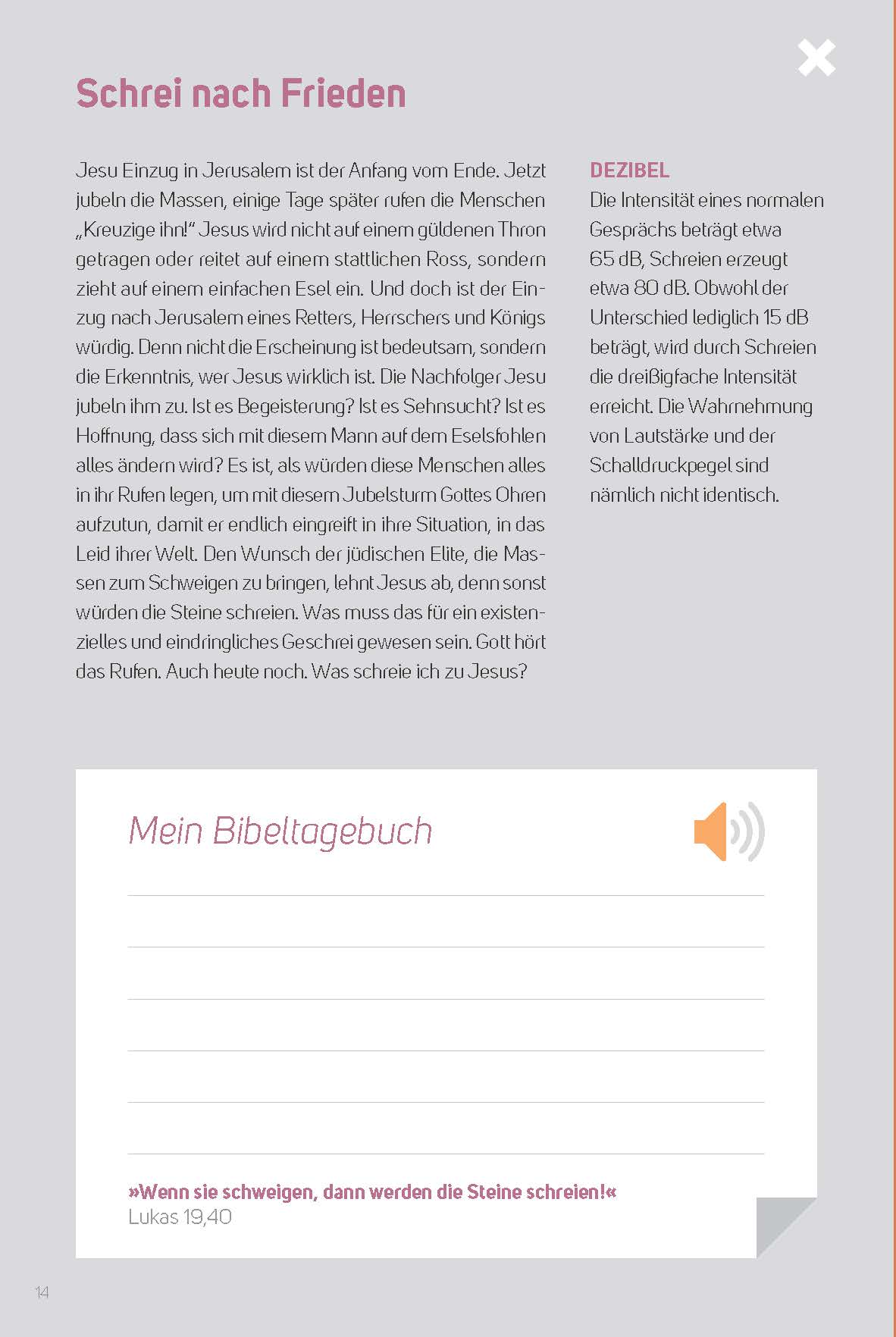 Das »Bibeltagebuch Passion und Ostern« lädt dazu ein, die Texte zu lesen und den eigenen Gedanken und Impulsen Ausdruck zu verleihen. Die 27 ansprechend gestalteten Kapitel mit Bibeltexten im komfortablen Satz aus der BasisBibel lassen der kreativen Auseinandersetzung viel Raum.