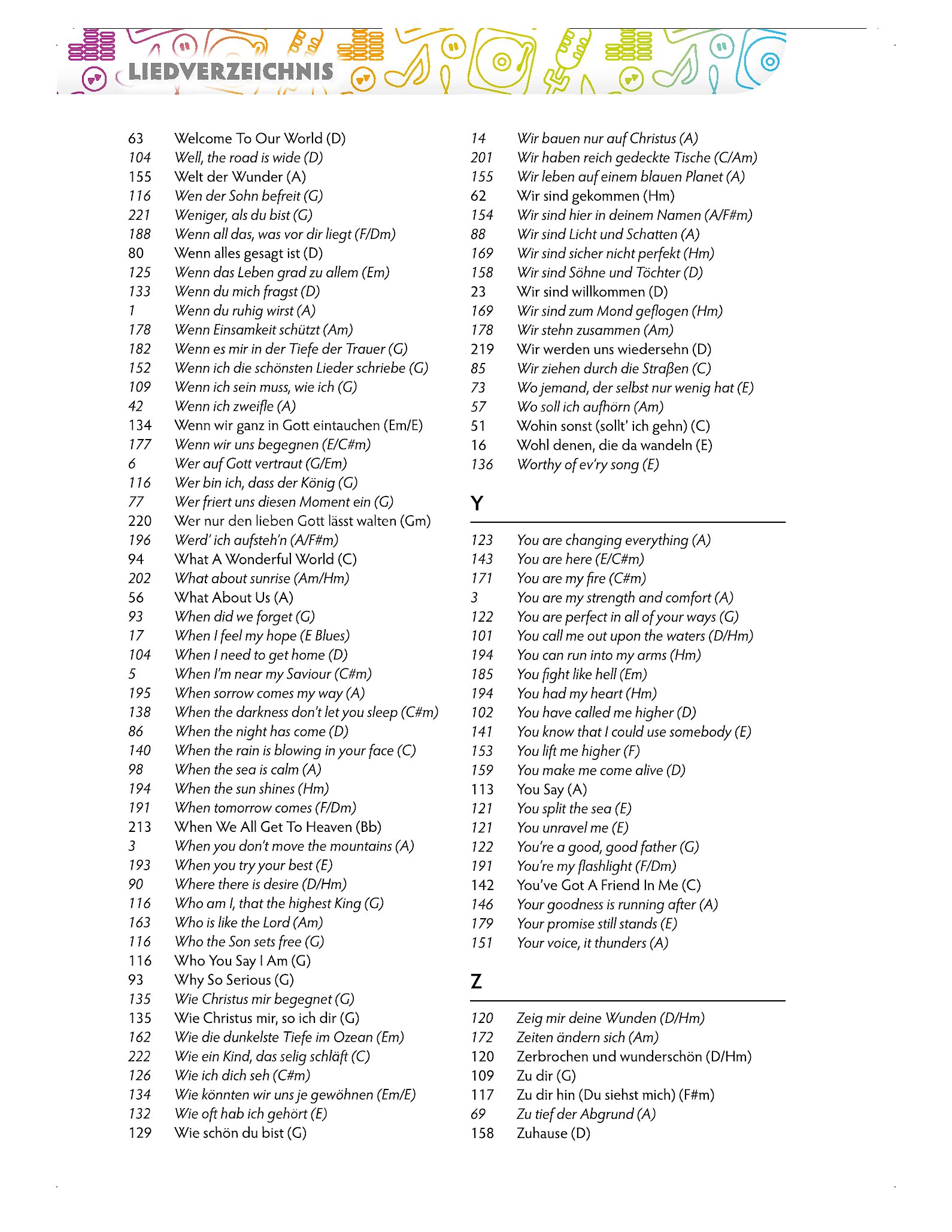 • Übersichtlicher Registerteil für schnelles Finden passender Lieder