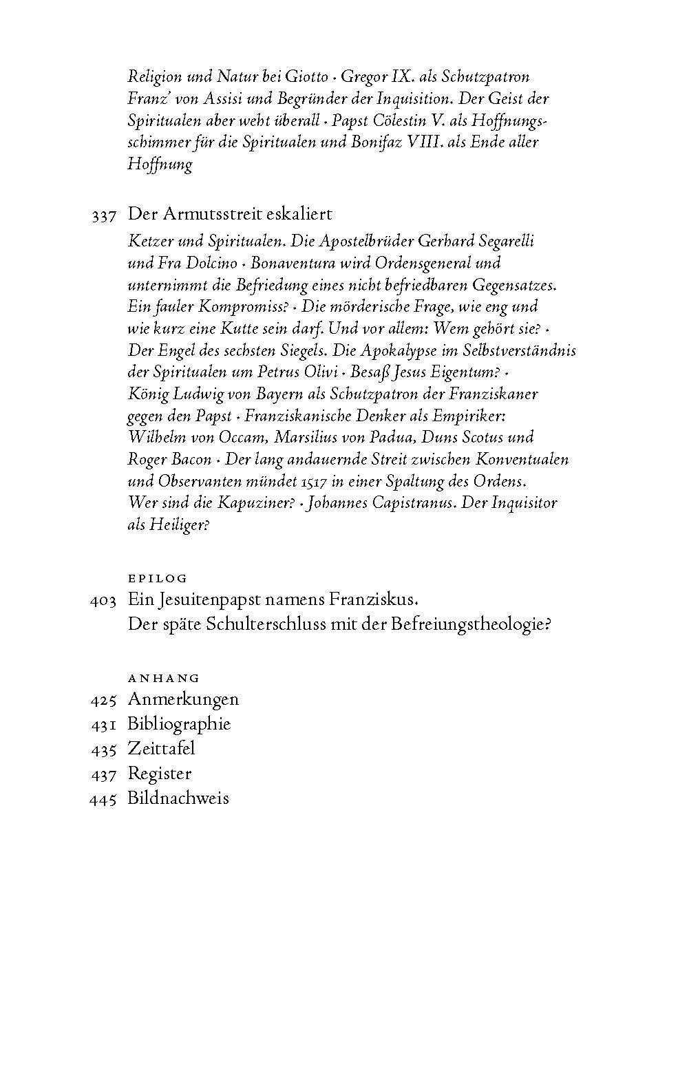 Schnell entsteht eine Massenbewegung, die die Kirche vor die Frage stellt: Verbieten oder Integrieren? Der Papst entschließt sich, mit Franz von Assisi die Kirche zu reformieren und macht ihn 1228 gar im Expresstempo zu Heiligen. Mit der Institutionalisierung der Bruderschaft als Orden geht jedoch viel vom ursprünglichen Geist der Franziskaner verloren, oder verkehrt ihn sogar ins Gegenteil. So sind die Franziskaner schon Mitte des 13. Jahrhunderts Teil der Inquisition, der wiederum viele „spirituale“ Brüder, die den Geist der Anfänge verteidigen, zum Opfer fallen.
