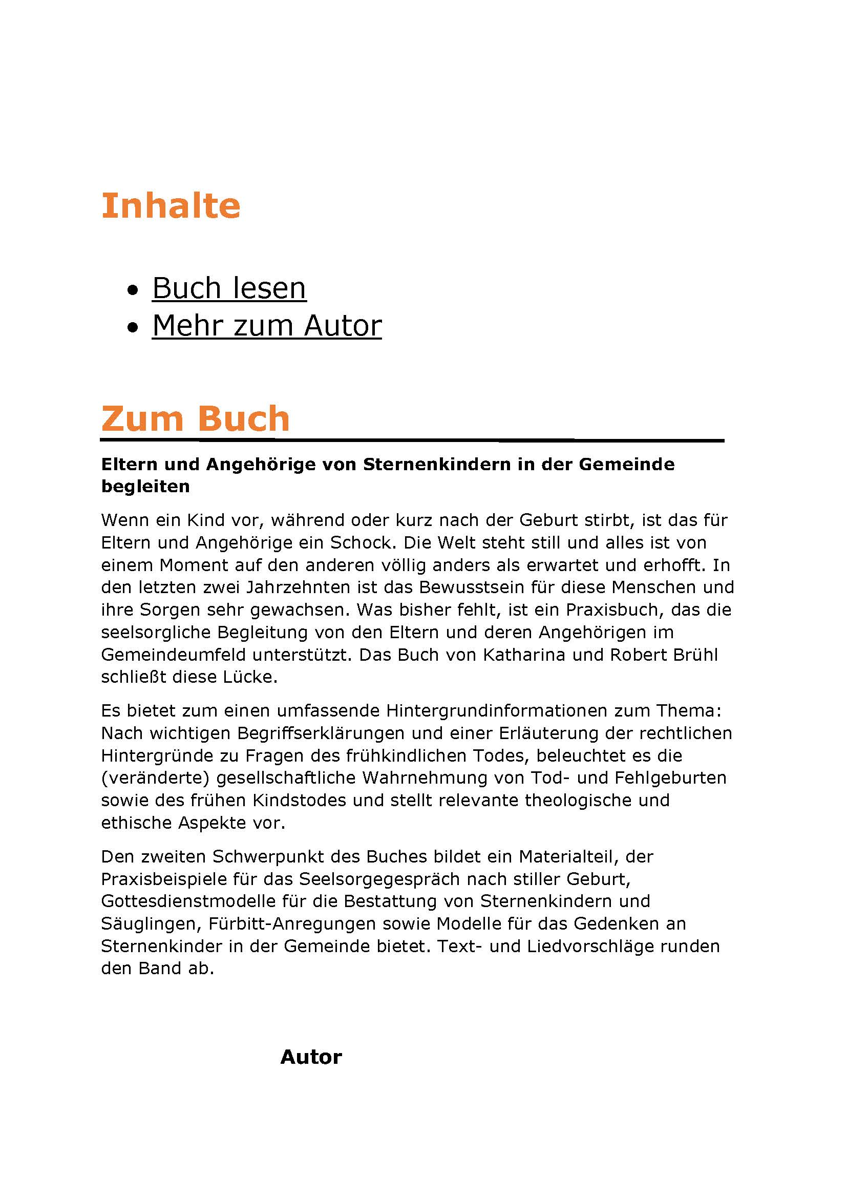 für das Gedenken an Sternenkinder in der Gemeinde bietet. Text- und