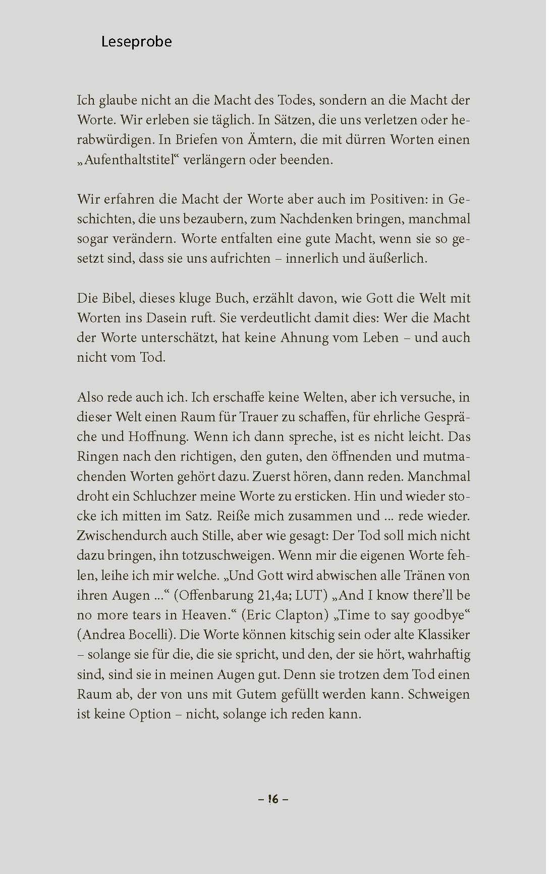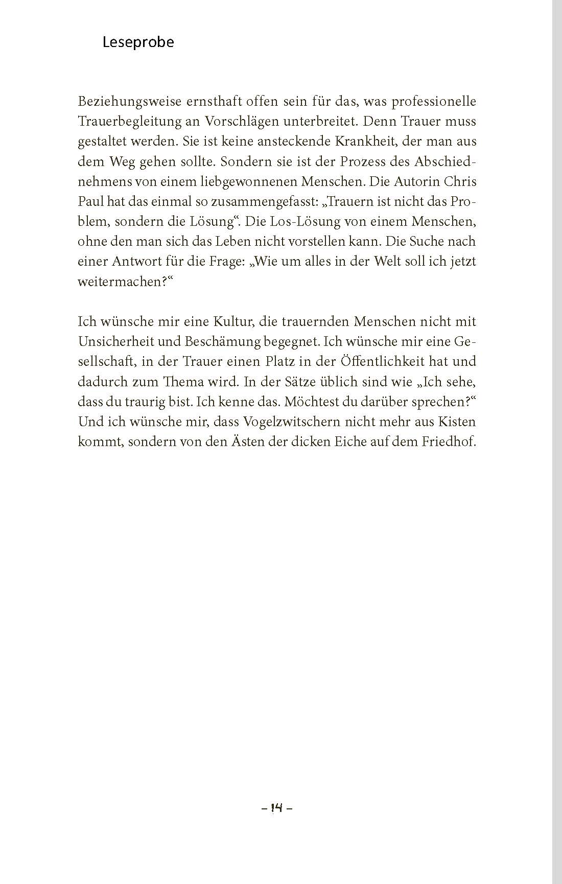 explizites Trauerbuch für akut Betroffene, da es die große Weite des