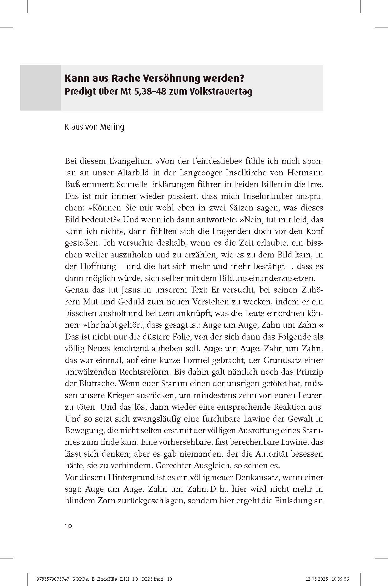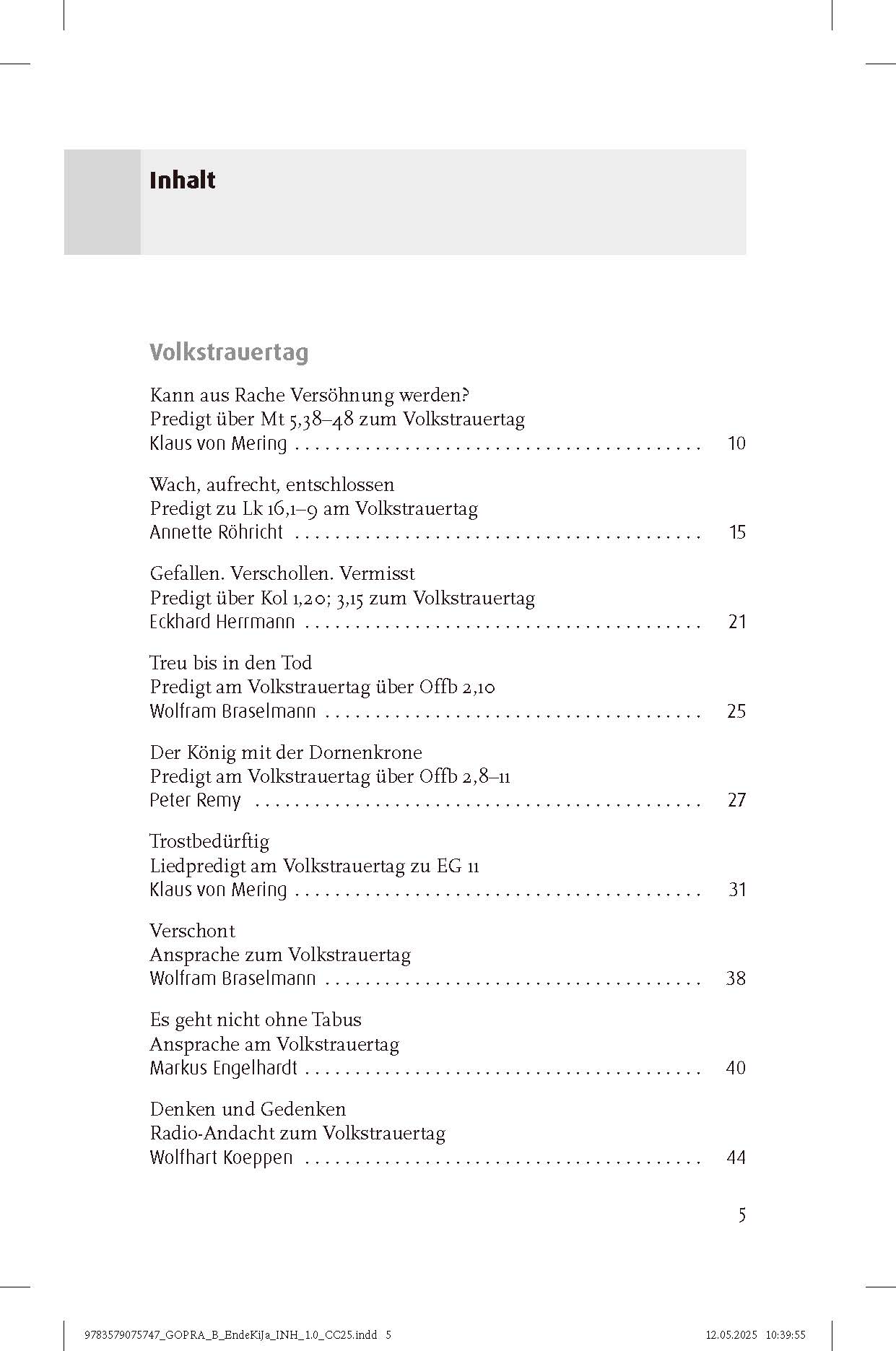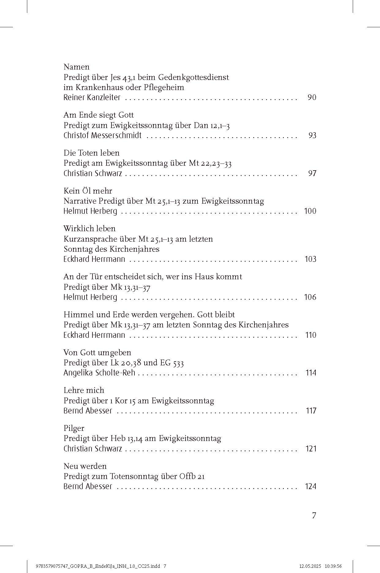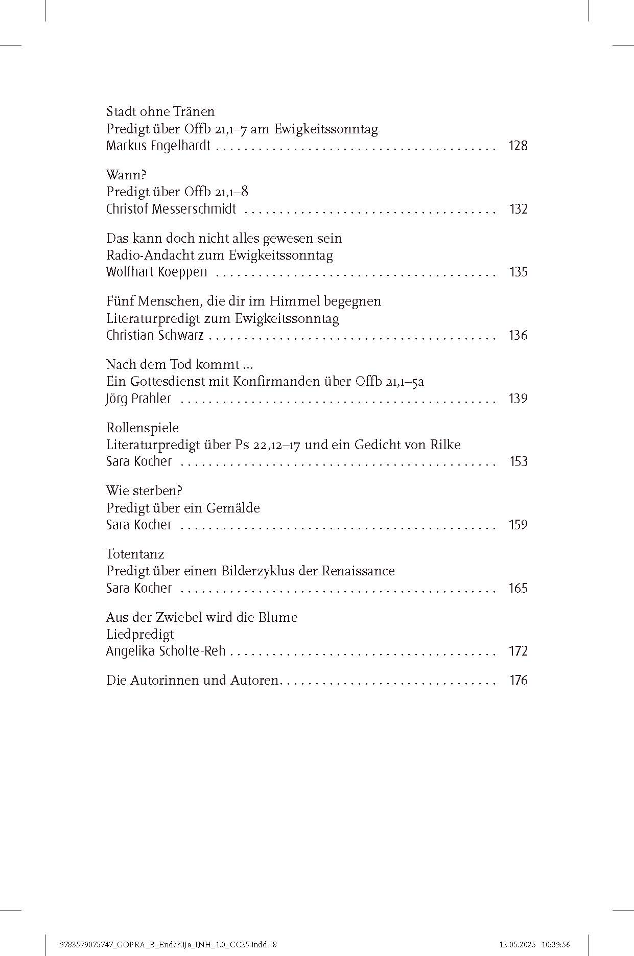 Der Band bietet Material und Vorbereitungshilfen für die Zeit am Ende des