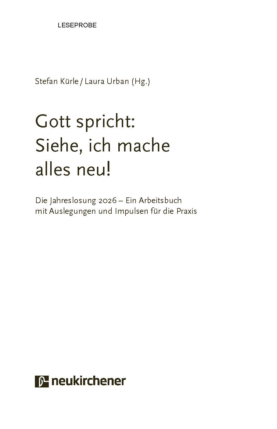 Die Jahreslosung ist für Viele der gemeinsame Kick-Off ins Jahr oder der rote Faden im Jahresverlauf. Dieses Praxisbuch bietet umfassendes Material, um Inhalt und Aussage der Jahreslosung 2026 fundiert im biblischen Kontext zu erschließen. Mit einzelnen Bausteinen und fertigen Entwürfen für die Arbeit mit verschiedenen Gemeindegruppen: Von der Arbeit mit Kindern und Teens bis zur Seniorengruppe, vom Religionsunterricht über Gremien bis zum Ferienprojekt.