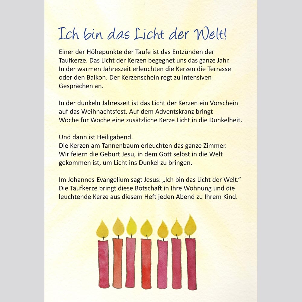 Die Kerze symbolisiert das Licht Christi, das den Weg erhellt. Das Heft erklärt, wie Gottes Licht Trost schenkt und Mut macht – eine liebevolle Einladung, das Licht im Alltag zu entdecken.