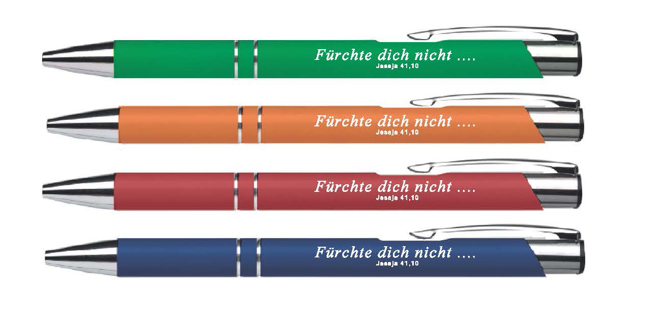 Ergonomisch geformter Kugelschreiber mit der Jahreslosung