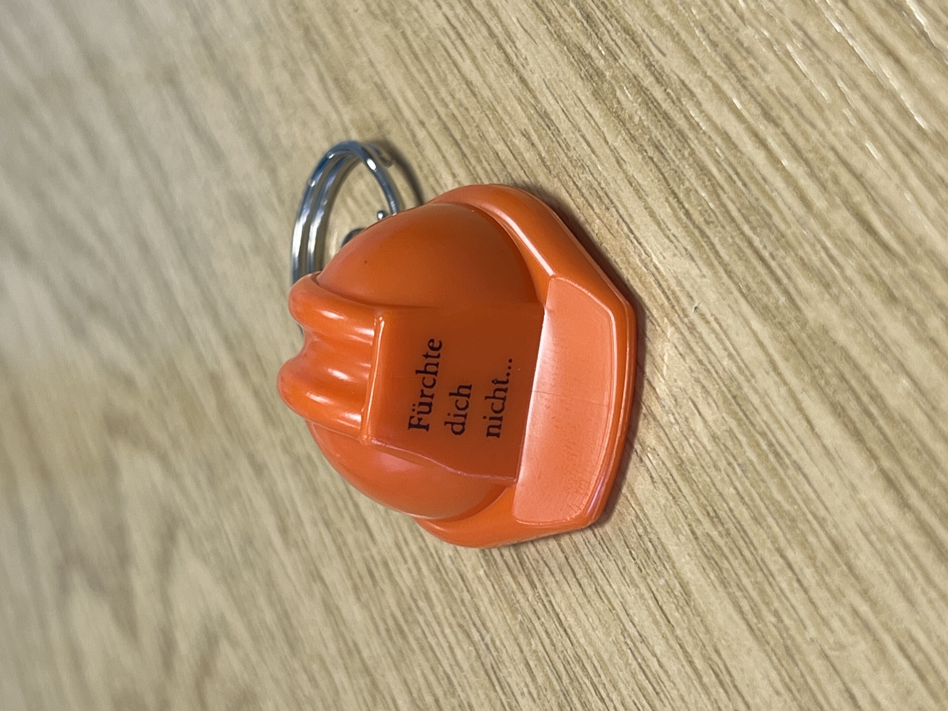 Ja, der Schlüsselanhänger trägt den Zuspruch „Gottes Liebe hört nie auf.“