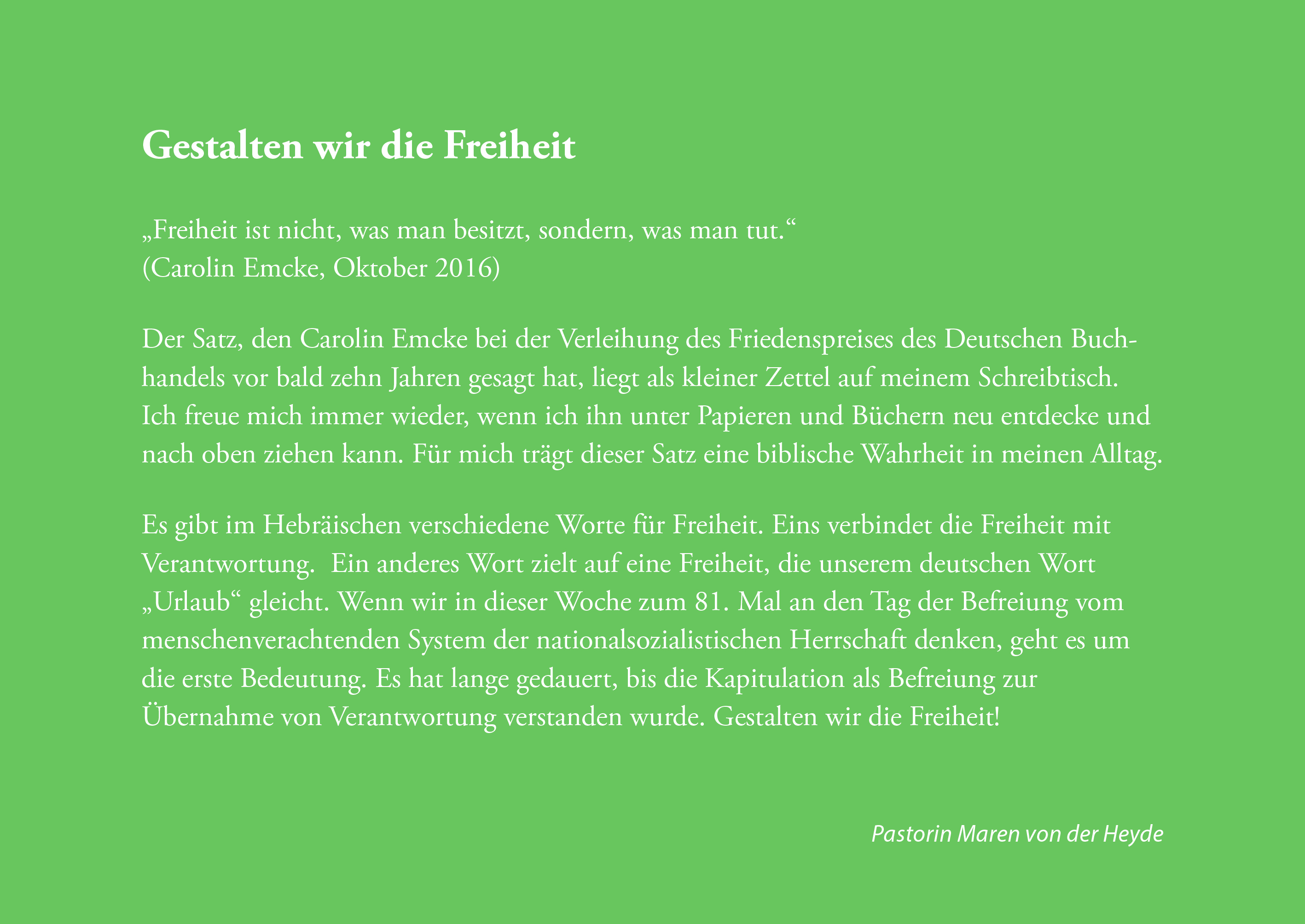 „Siehe, ich mache alles neu!“ lädt ein, Veränderungen mit Zuversicht zu begegnen. Die Postkarte eignet sich als kleiner Impuls für Neuanfänge, Segenswünsche zum Jahreswechsel oder als Trost- und Hoffnungsgeste in herausfordernden Zeiten.