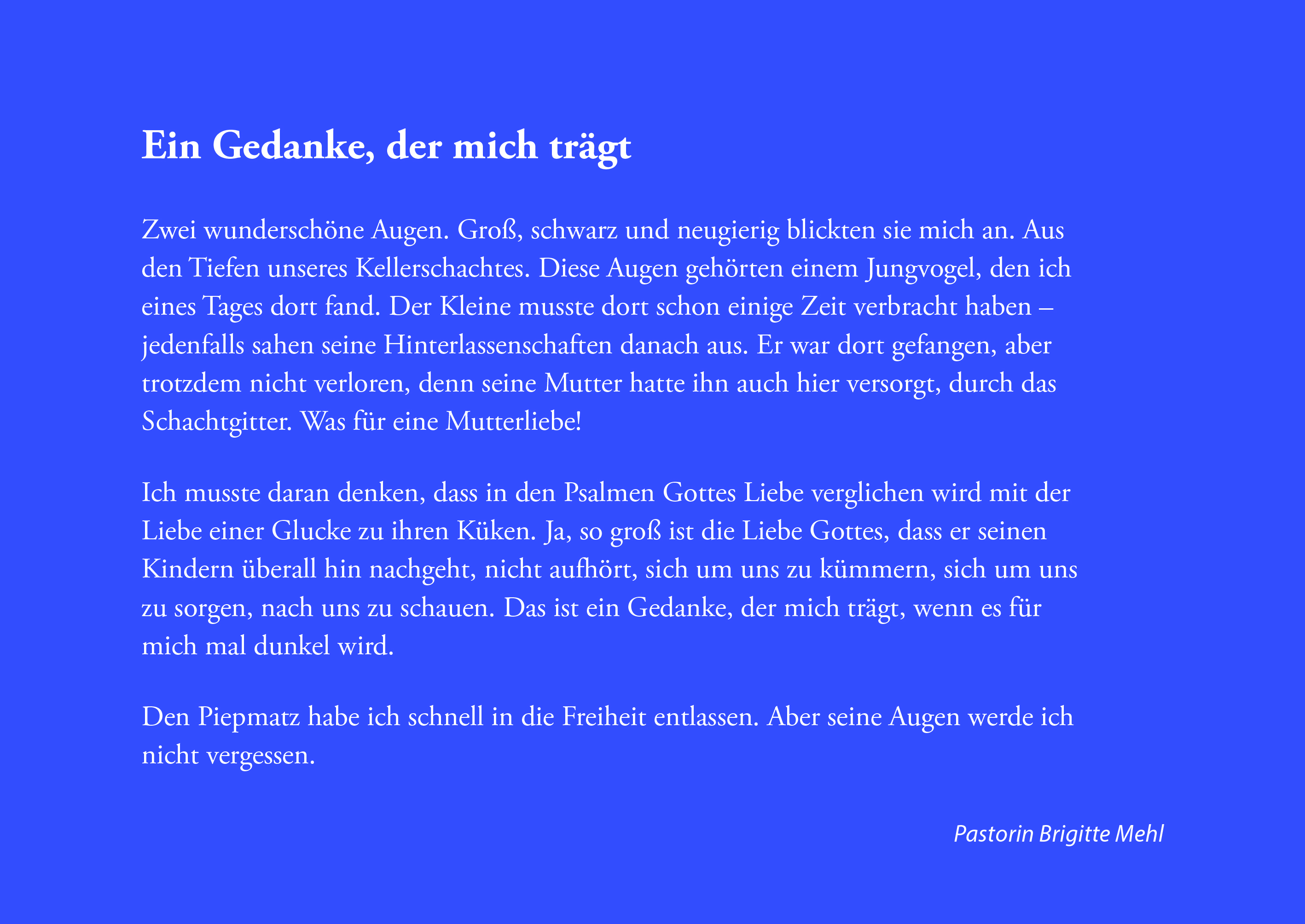 Morgendlicher Wochenimpuls: Starten Sie die Woche mit dem Bild und dem kurzen Andachtstext.
