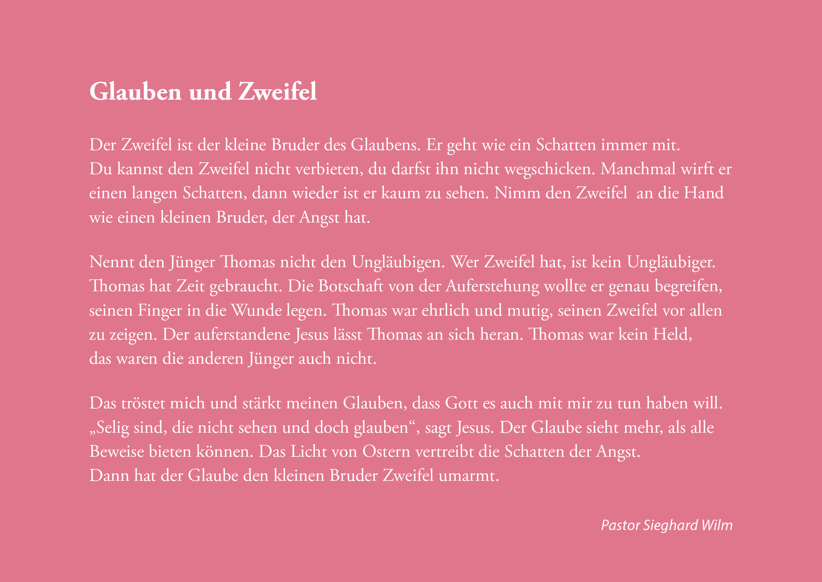 Auf Anfrage senden wir gern eine Beispielseite oder ein kurzes Textmuster, damit Sie sich einen konkreten Eindruck von Sprache und Tonfall der Andachten machen können.