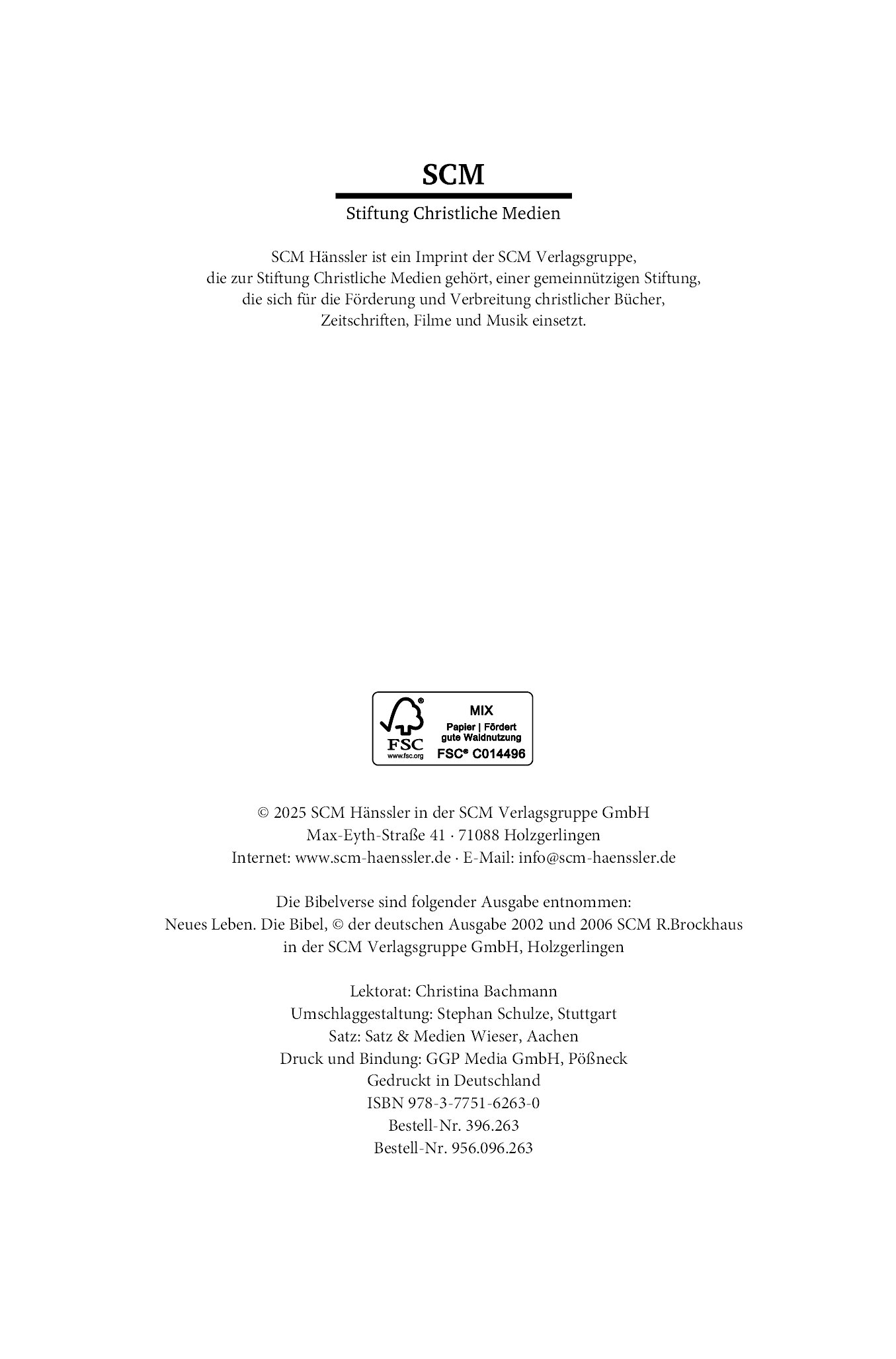 Verfügbar als gebundenes Buch (Hardcover) und als eBook (EPUB). Verlagsangabe: SCM Hänssler. ISBN: 9783775162630. Umfang: ca. 400 Seiten. Ideal als Geschenk, für den Lesekreis oder zur vertiefenden Lektüre.