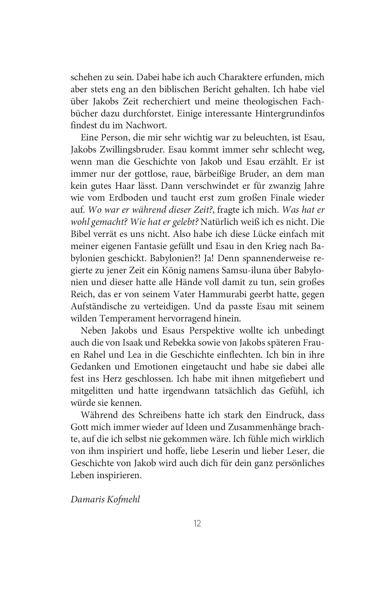 „Jakob – Ein Bibel‑Thriller“ von Damaris Kofmehl erzählt die bekannte biblische Geschichte von Jakob und Esau als spannungsgeladene, emotionsstarke Nacherzählung. Im Zentrum stehen Verrat, Flucht, Intrigen und die Frage nach Versöhnung: Ein Betrug entzweit die Zwillingsbrüder, Jakob muss sein Zuhause verlassen und gerät in ein Netz aus List und Machtspielchen. Jahre später kehrt er heim – doch die Schatten der Vergangenheit drohen alles zu zerstören. Die Autorin verknüpft historisch recherchierte Details mit psychologischer Tiefe und lässt inmitten der Dramatik immer wieder Gottes Gegenwart aufscheinen.