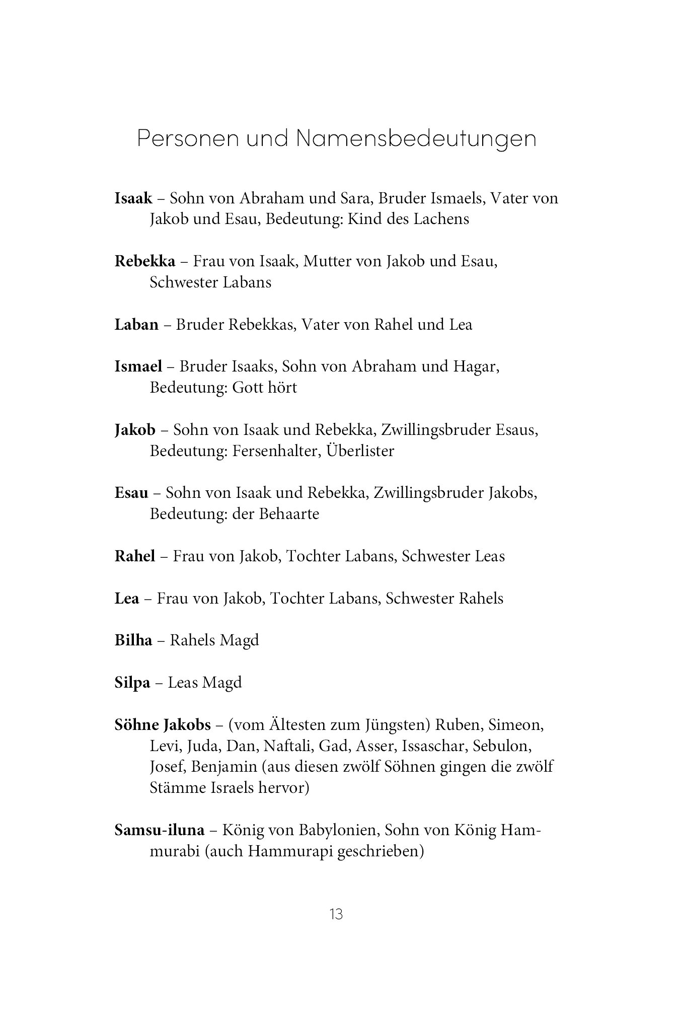 Nebenfiguren (Laban, Lea, Rahel u. a.): Leben die Welt der Zeit: Machtspiele, soziale Regeln und Alltagsrealität der damaligen Kultur.