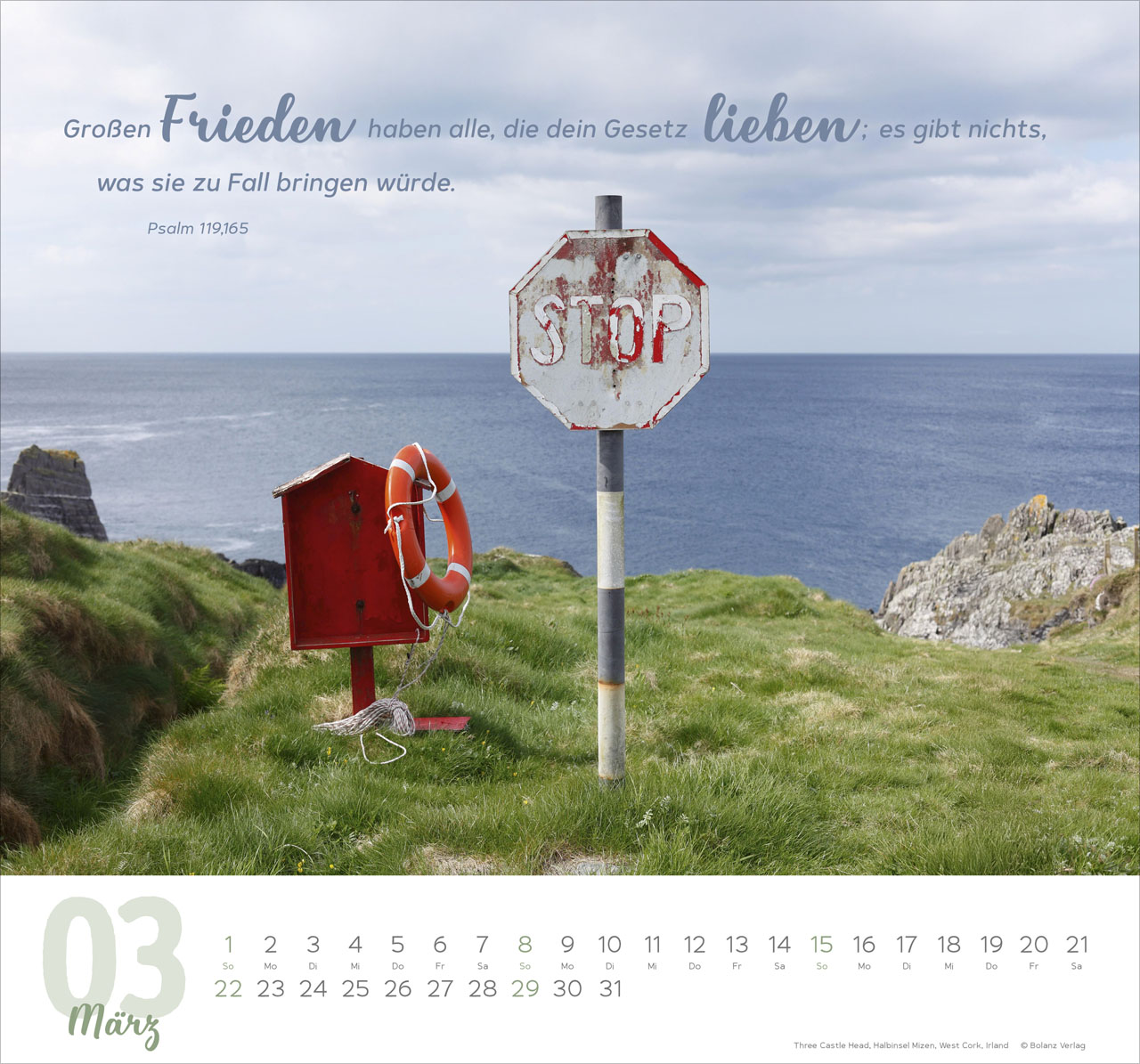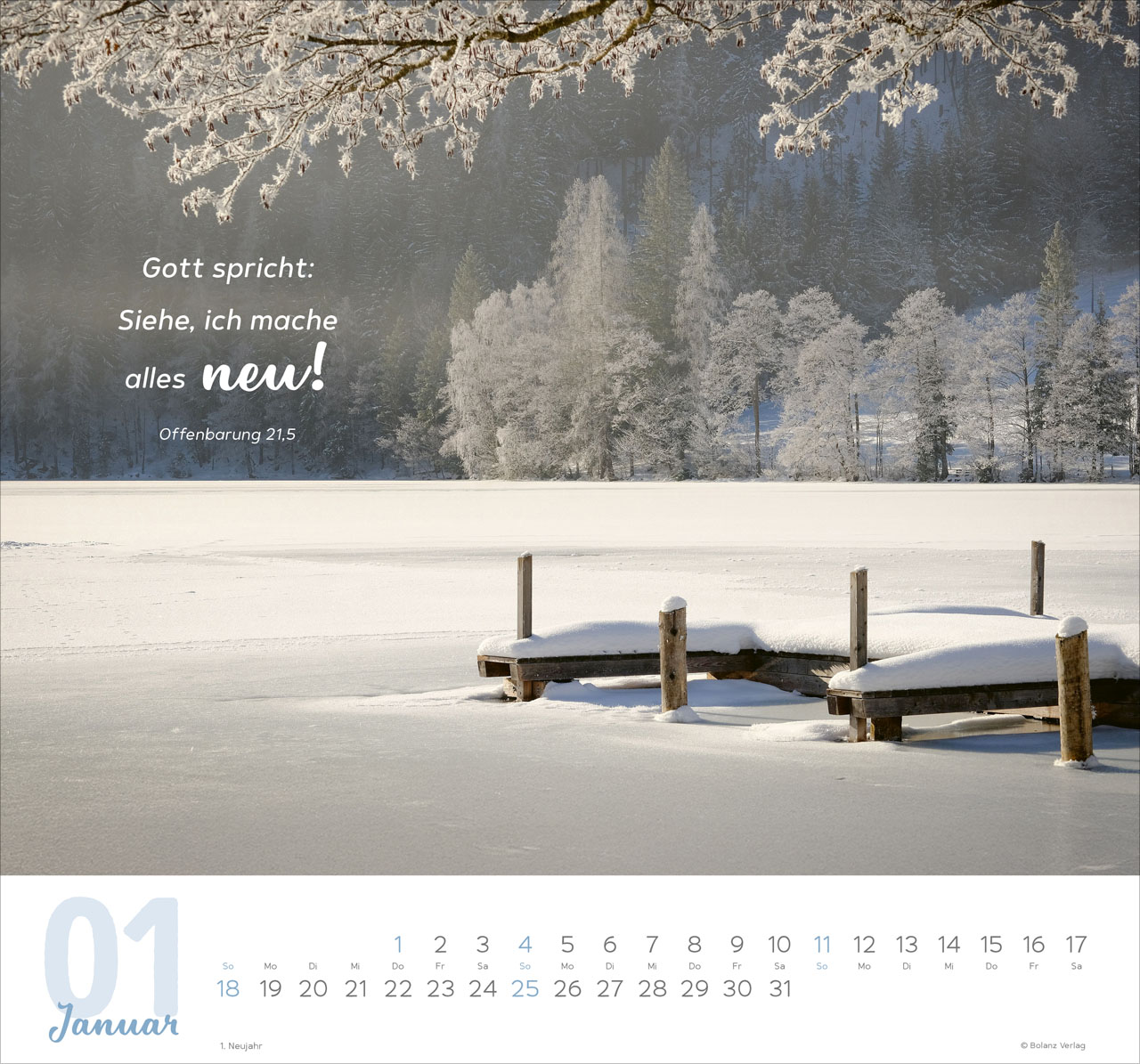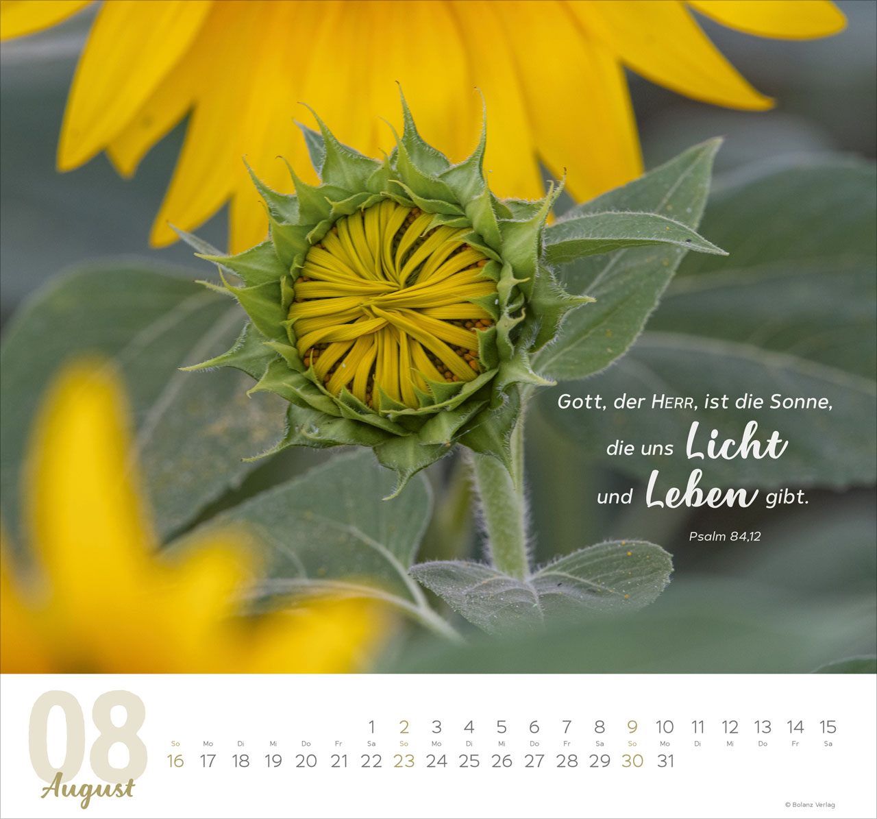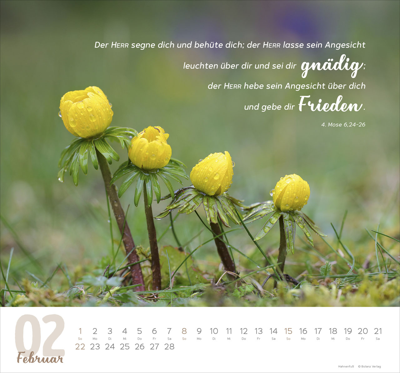 Der Kalender ist so strukturiert, dass jede Kalenderwoche eine ausgewählte Strophe oder einen zentralen Liedvers in den Mittelpunkt stellt. Zu jedem Vers finden Sie: