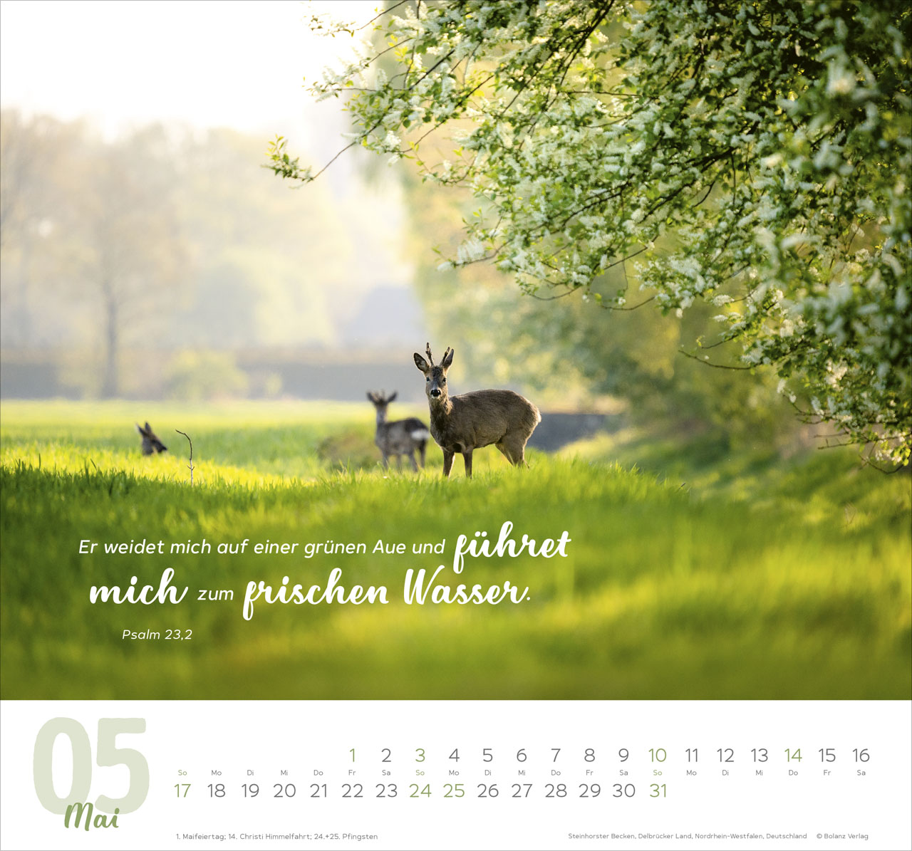 Enthält der Kalender den vollständigen Liedtext?Der Kalender bringt ausgewählte Strophen und Zitate als Grundlage für die Impulse; vollständige Liedtexte sind wegen Umfang und Layout nur teilweise abgedruckt.
