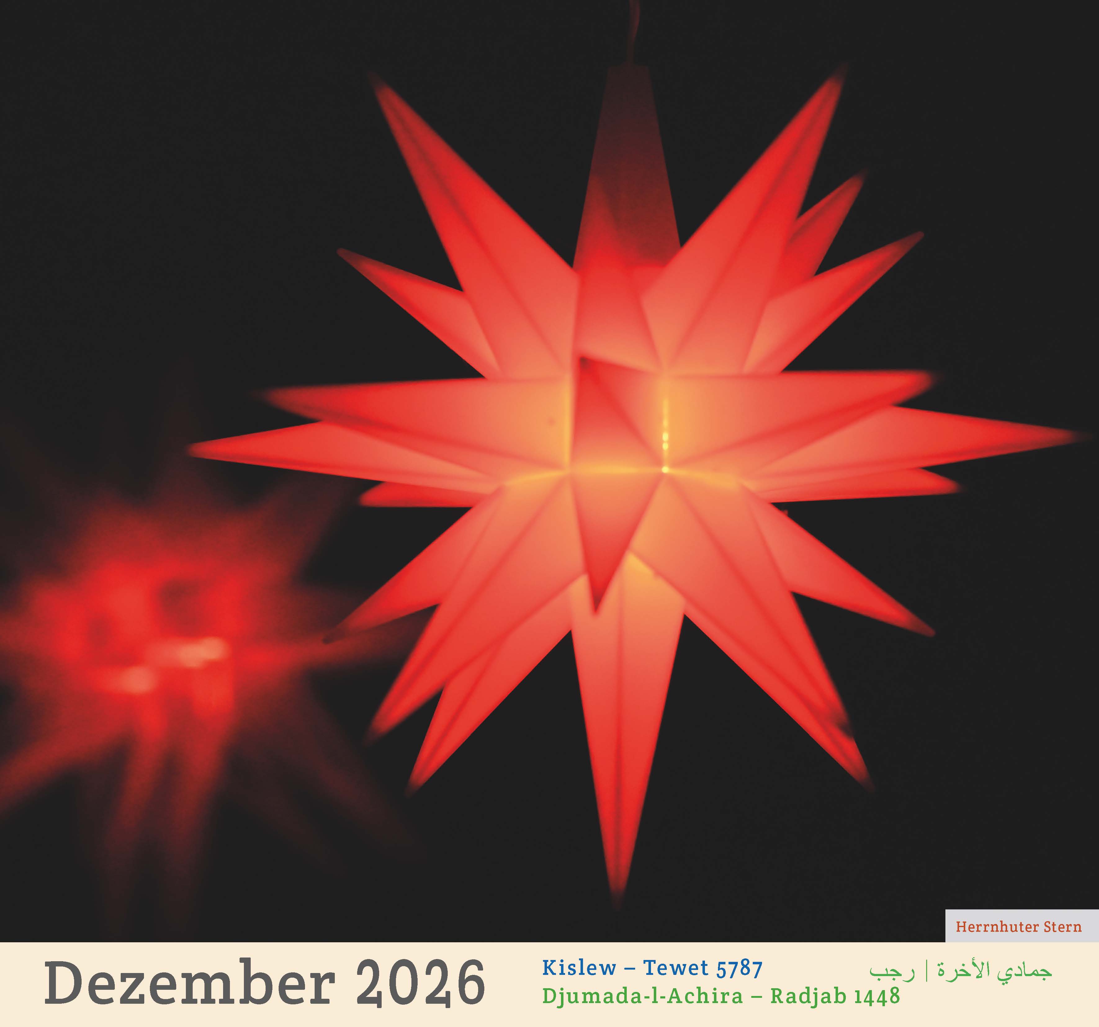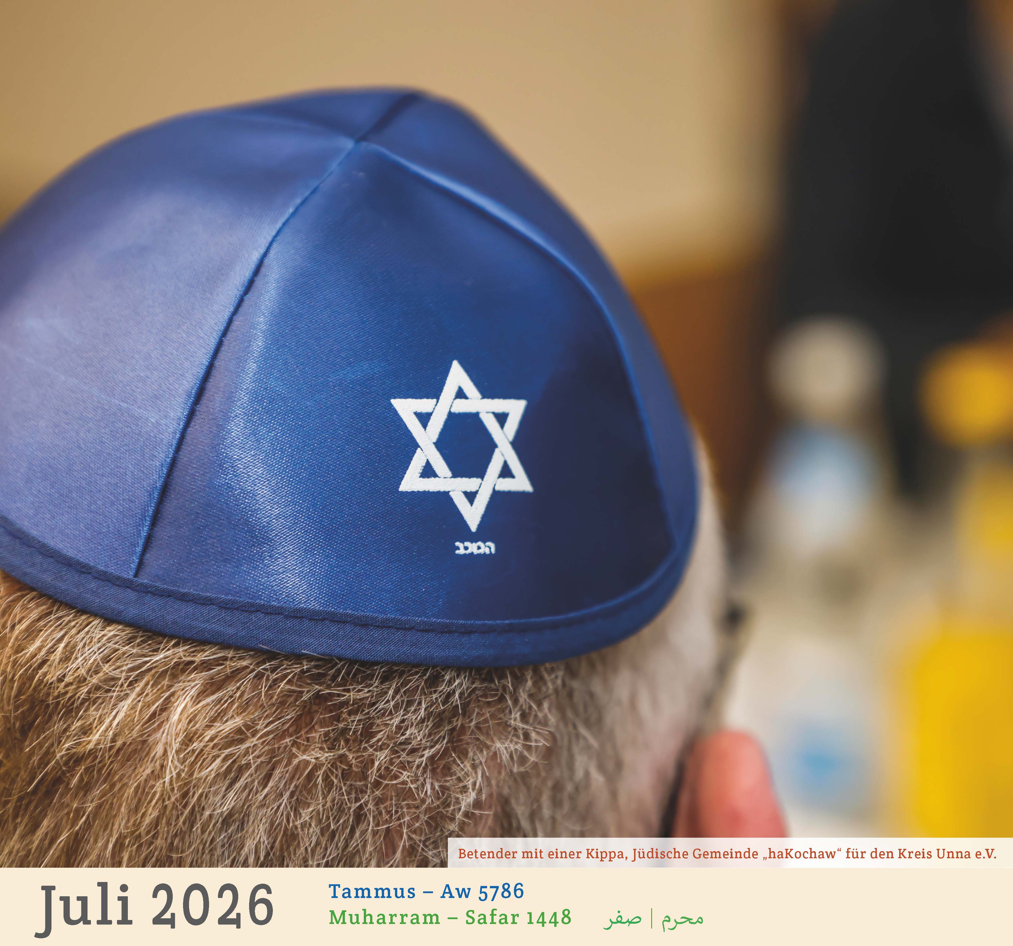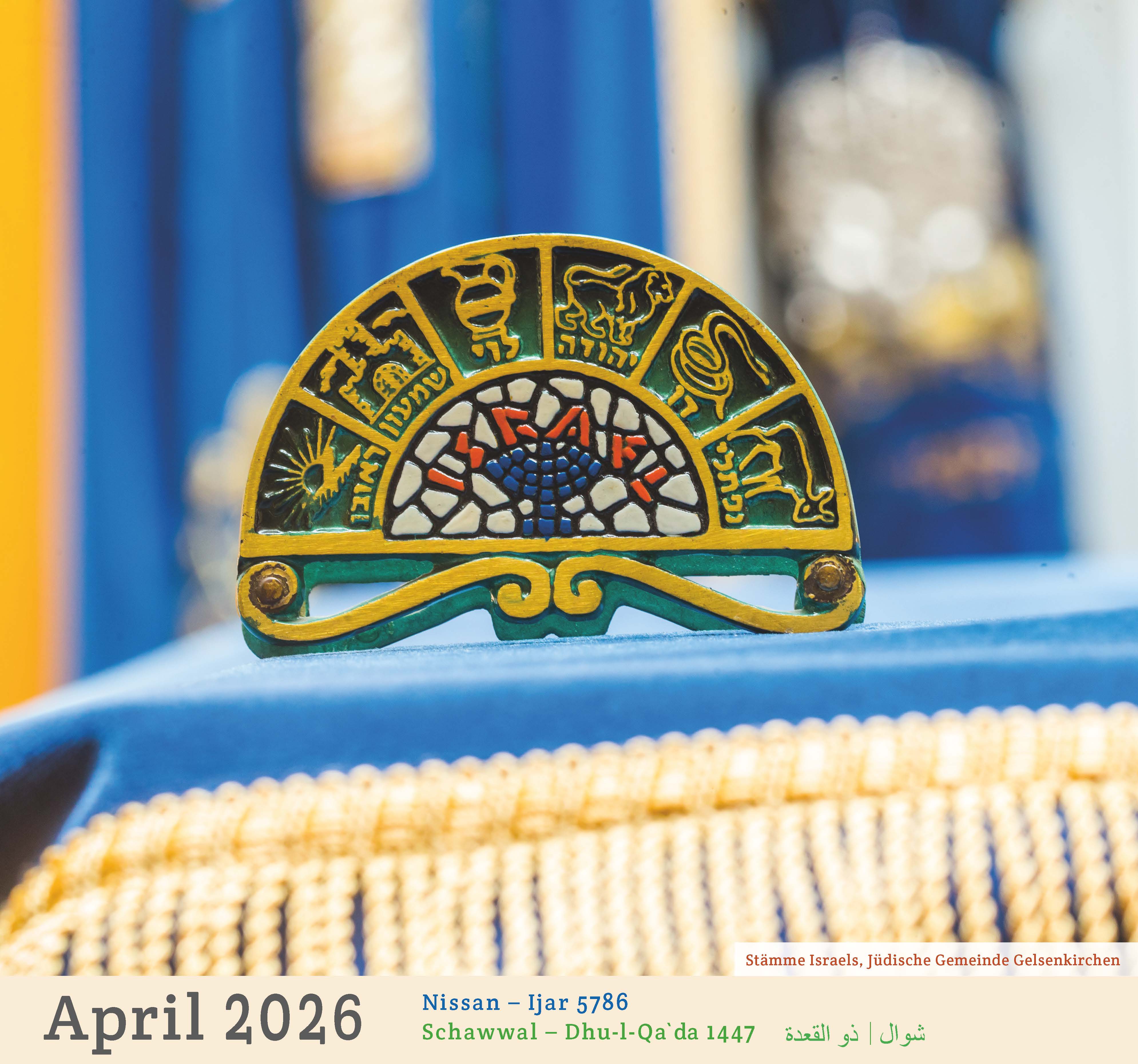 Der Kalender präsentiert 12 ansprechende Bilder und bietet informative Einblicke in Bräuche, Feste und Traditionen der drei großen Religionen.