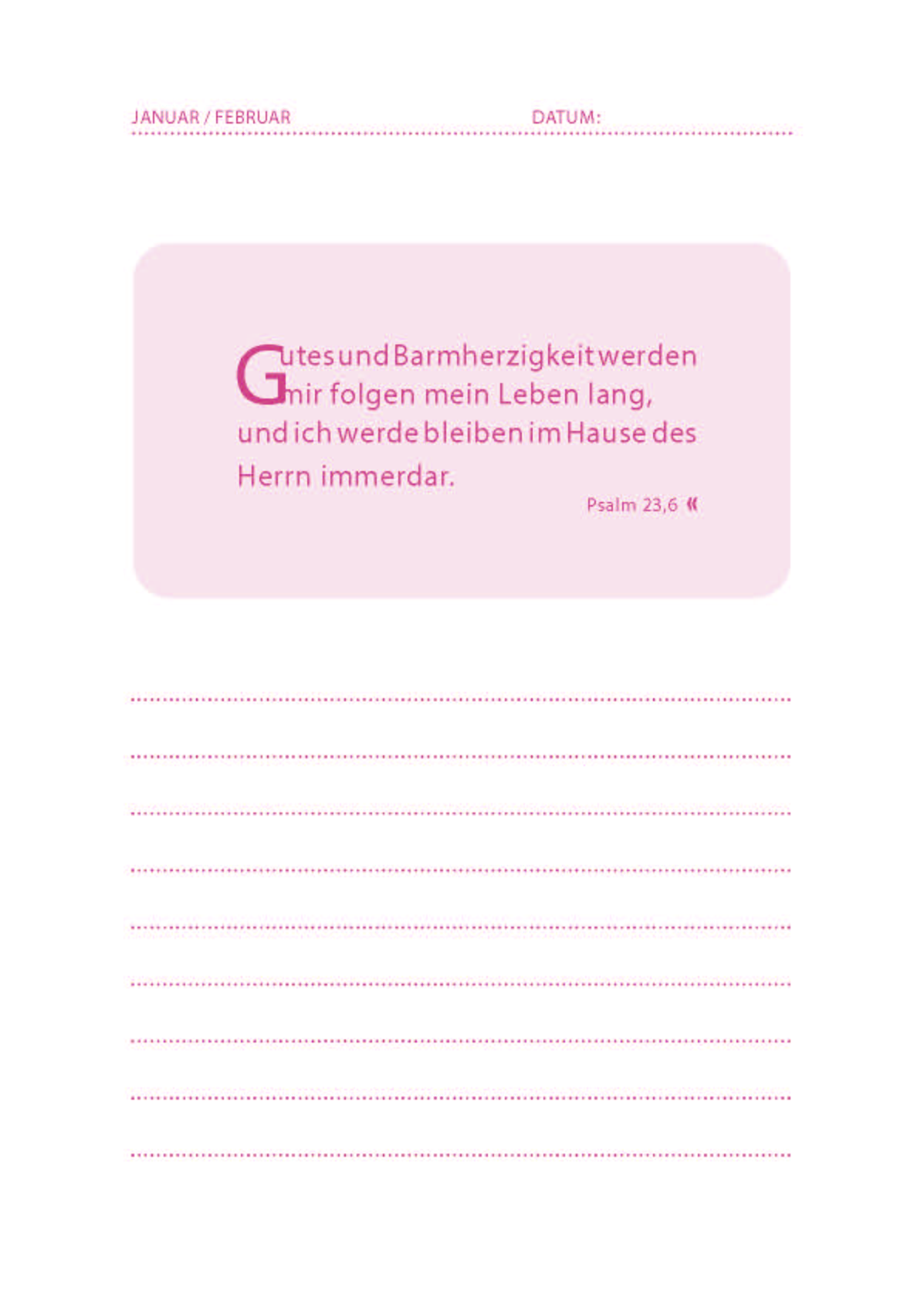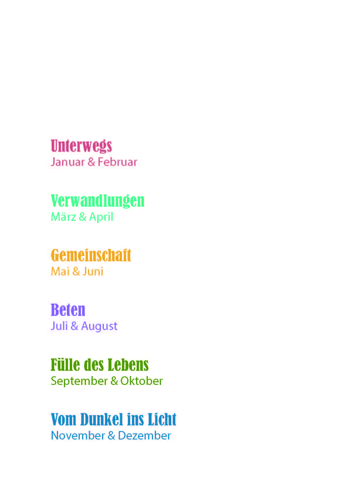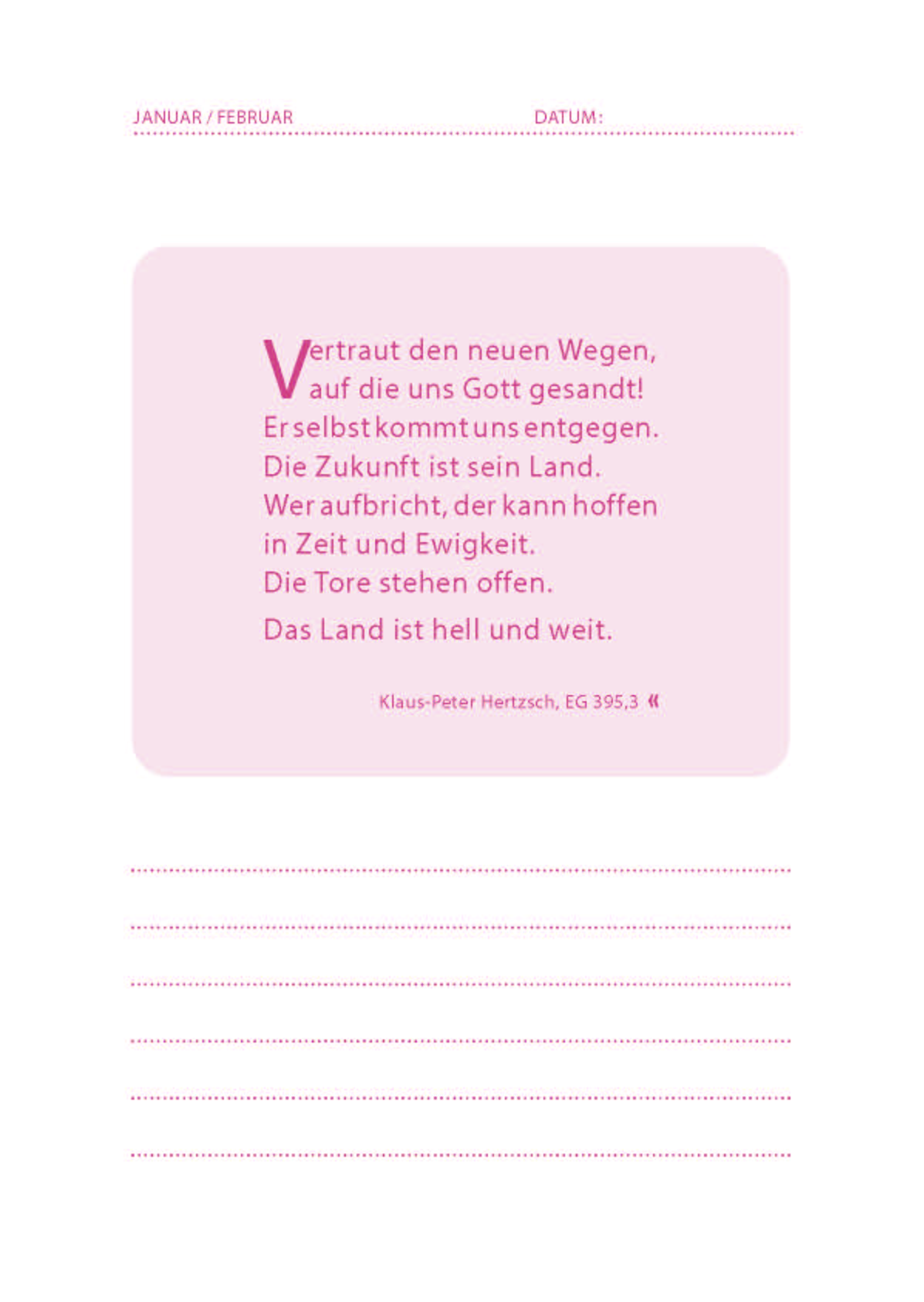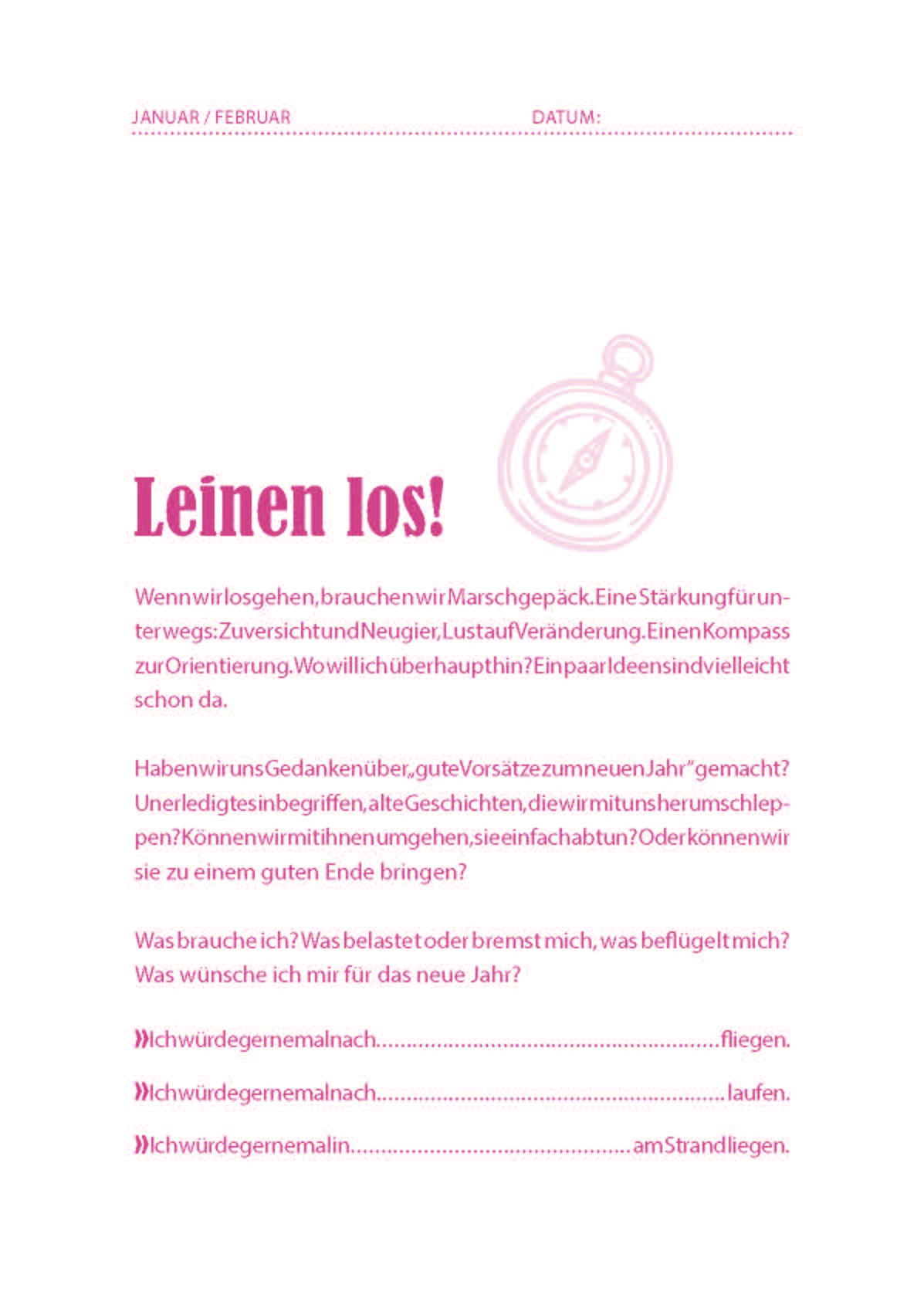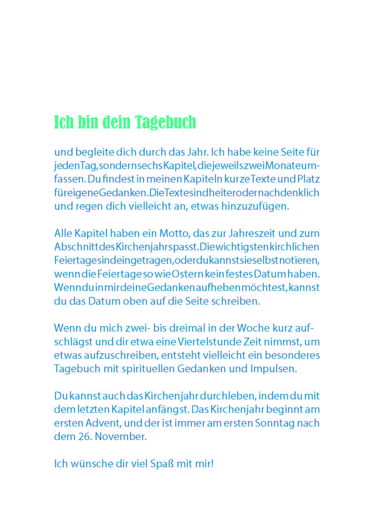 jeweils zwei Monate mit Impulsen und Platz für eigene Gedanken. Dieses Tagebuch