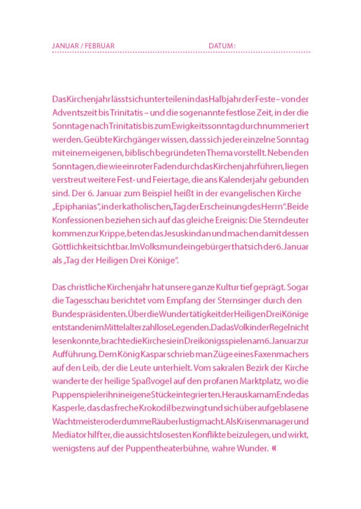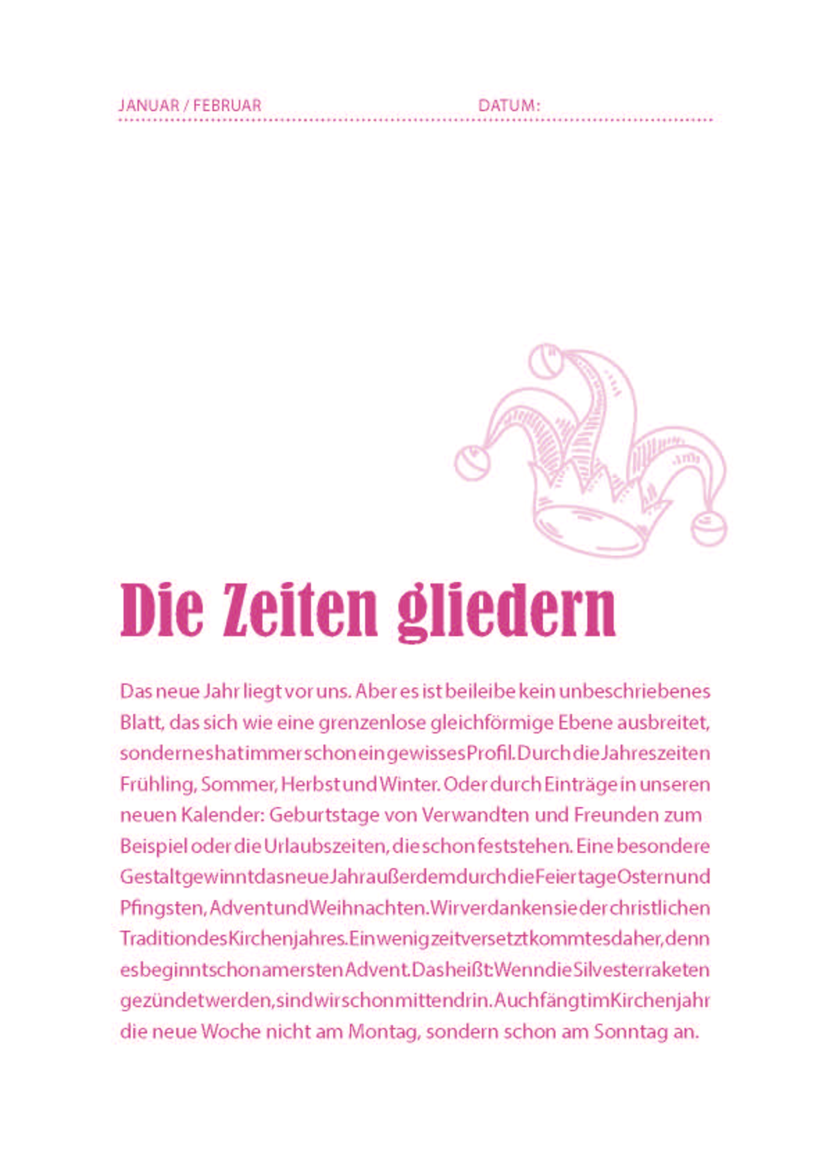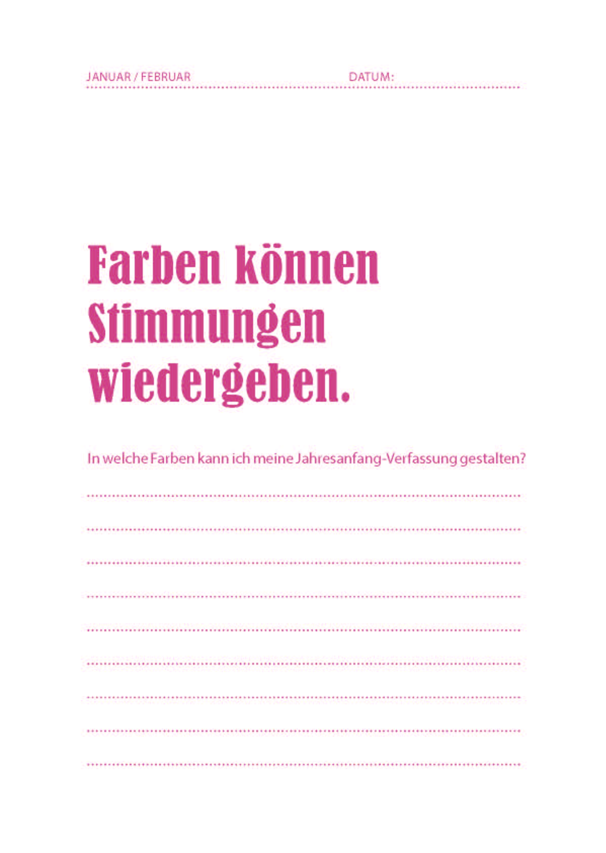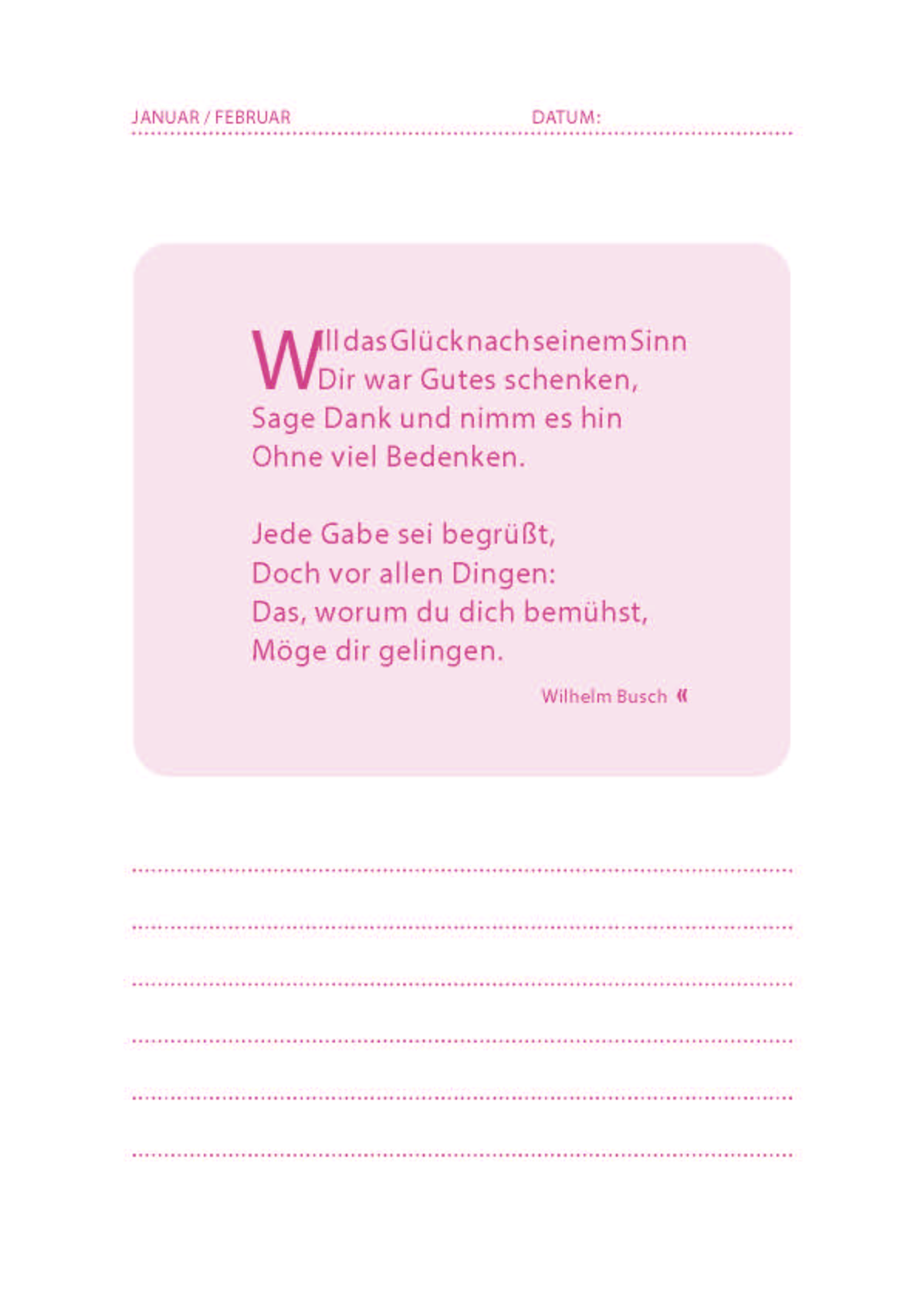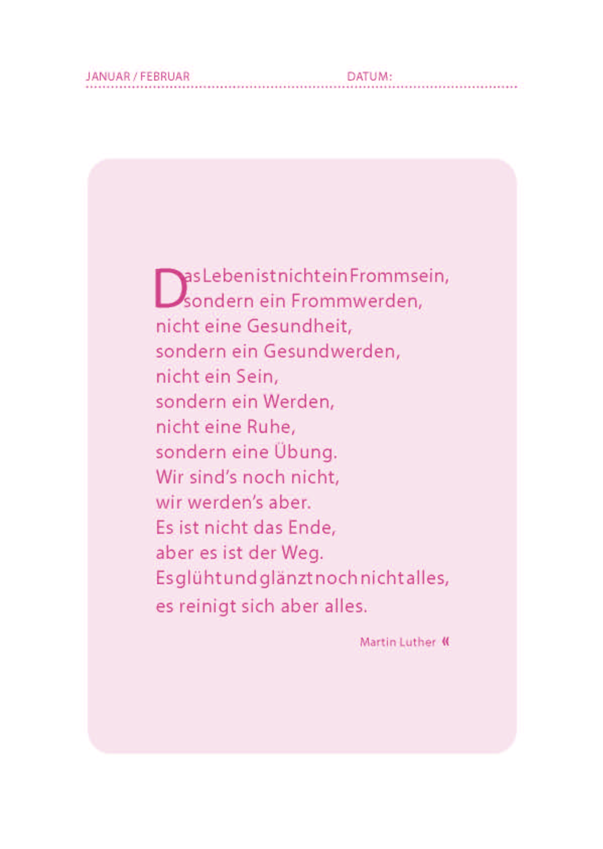 jeweils zwei Monate mit Impulsen und Platz für eigene Gedanken. Dieses Tagebuch