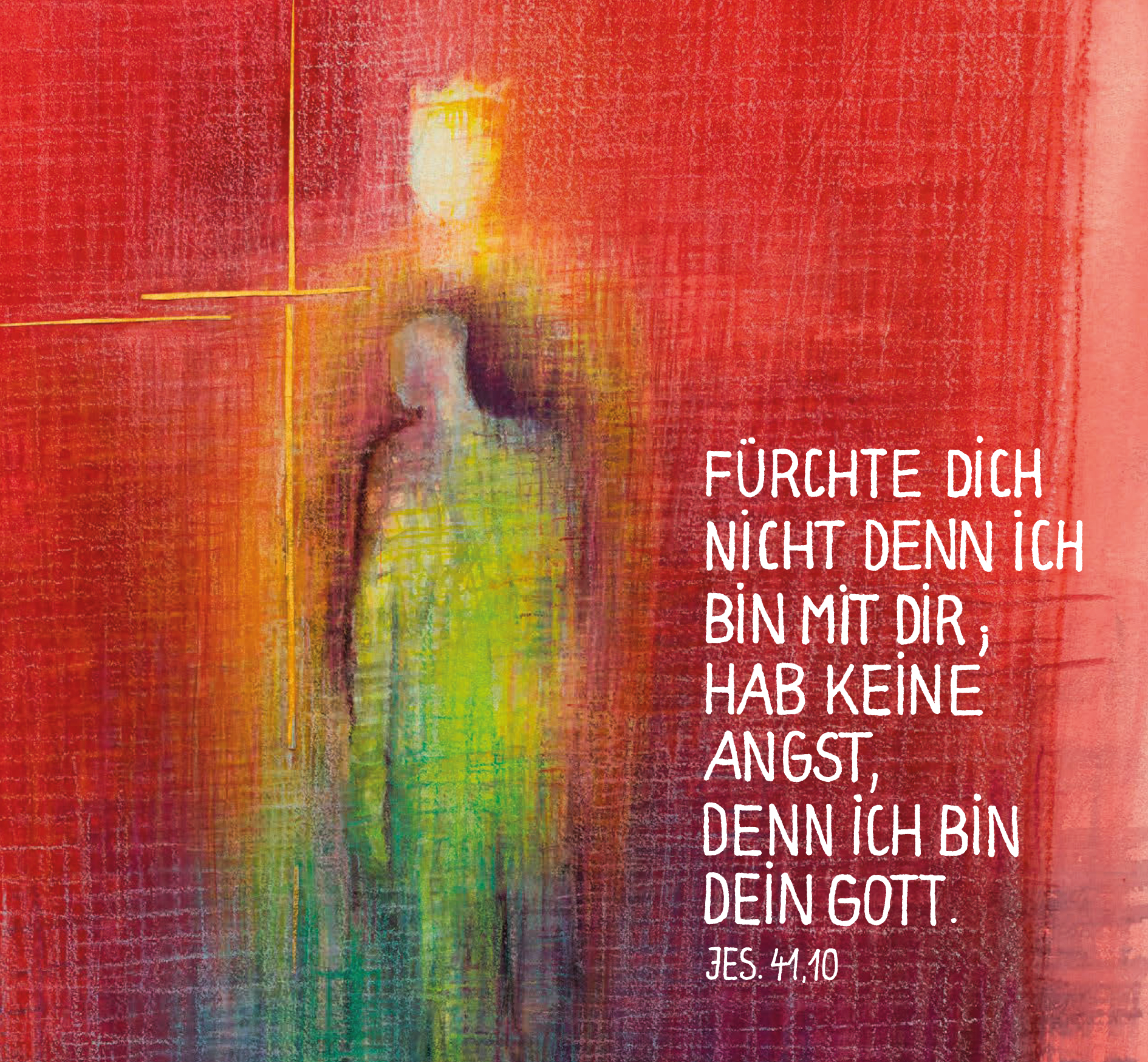 Das Motiv von Stefanie Bahlinger spürt dem Hoffnungsthema der Jahreslosung nach: Licht, Farbe und eine reduzierte Bildsprache öffnen Raum für persönliche Deutungen. Bahlingers Arbeiten zeichnen sich durch eine ruhige, kontemplative Ästhetik aus, die gut in Gottesdienste, Segensaktionen und Gemeindearbeit passt.