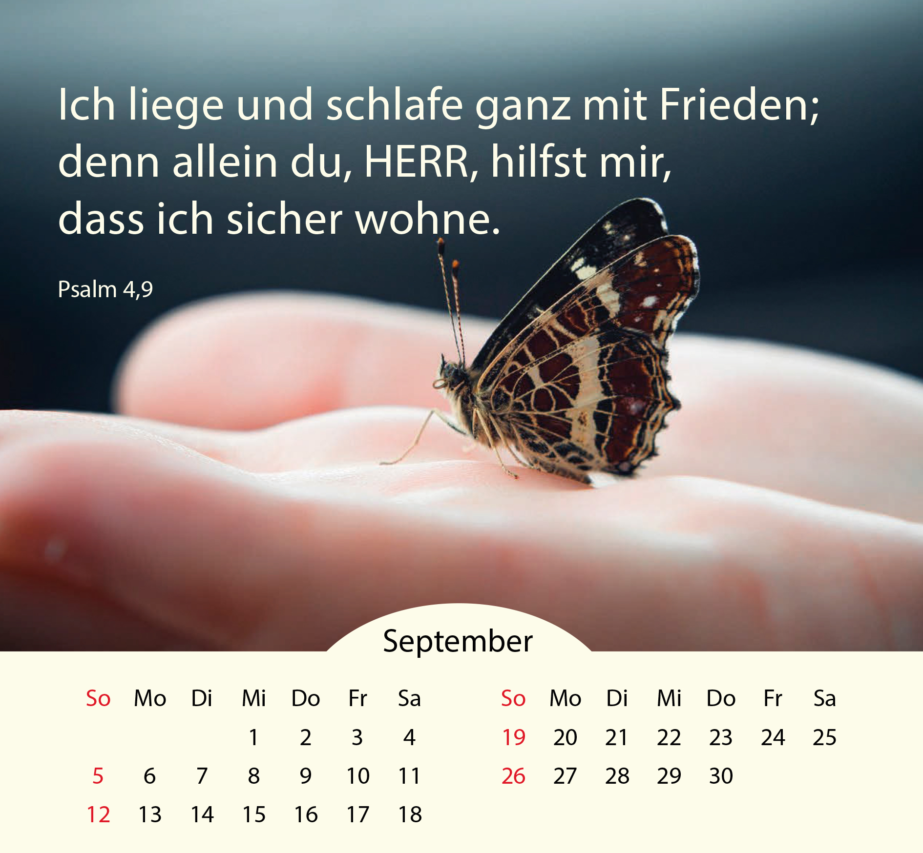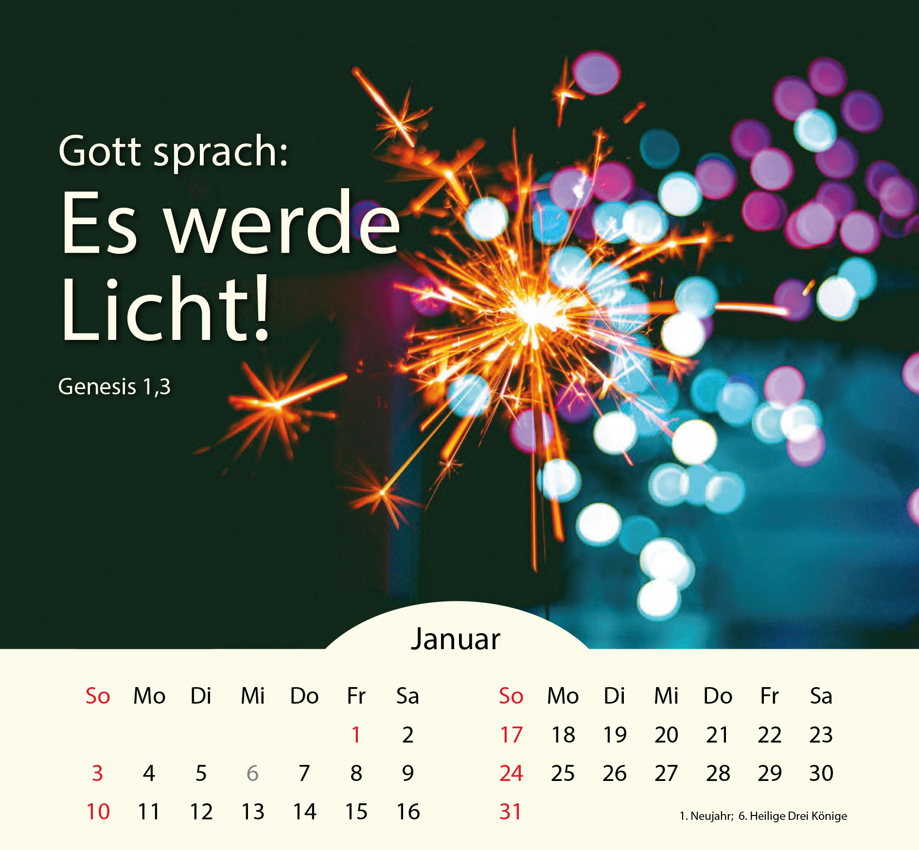 Inhalt: 12 Monatsblätter mit stimmungsvollen Lichtaufnahmen und Bibelversen