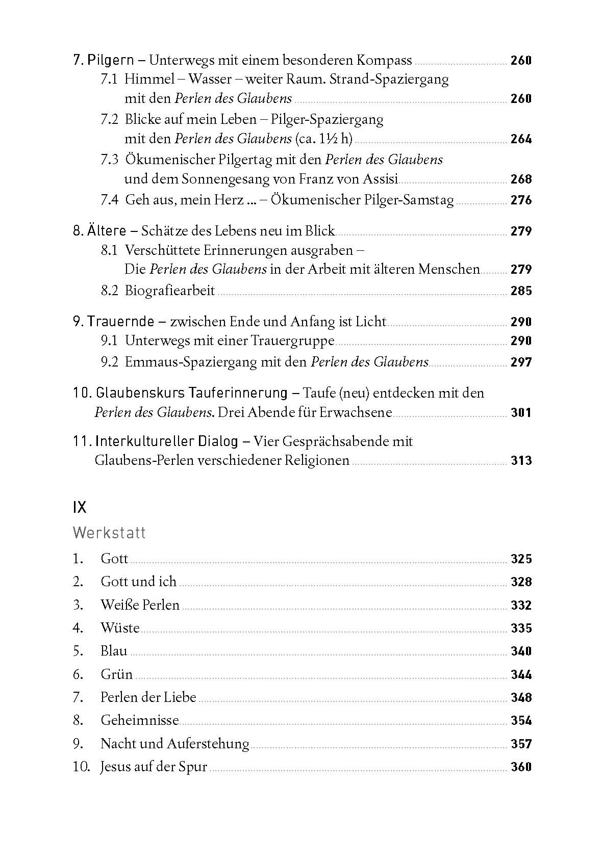 - Spirituelle Übungen zu jeder Perle (Anleitungen für Einzelne und Gruppen)