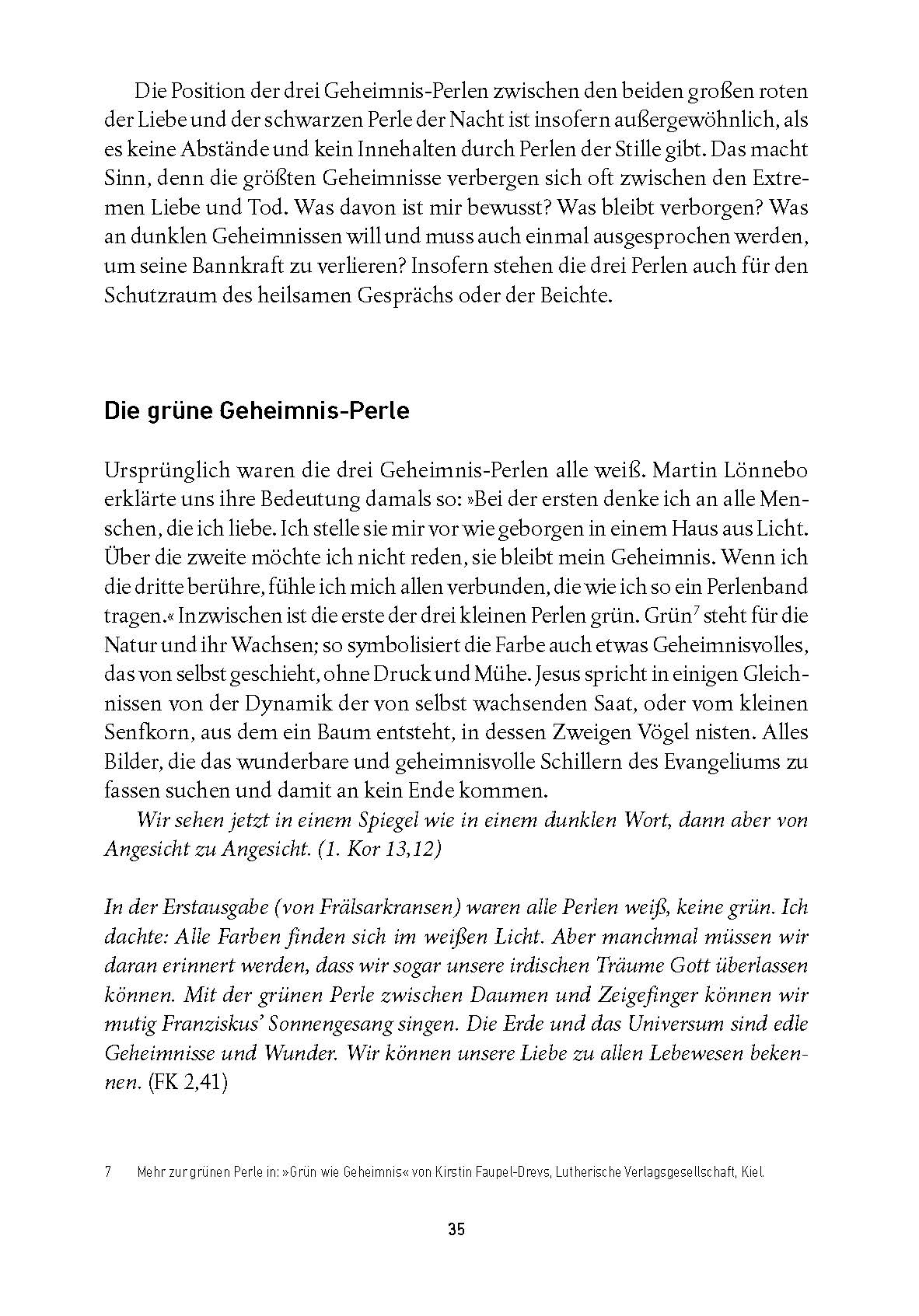 - Vertraut werden mit den Inhalten der Perlen (Theorie, Bildsprache, biblische Bezüge)