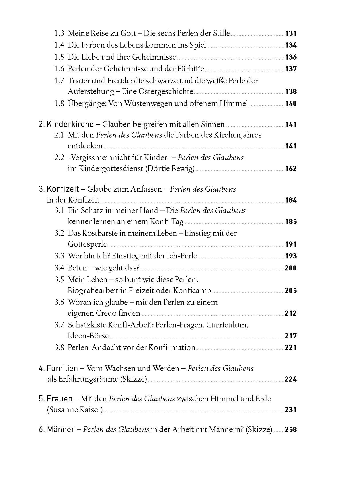 Für die Arbeit mit Kindern bietet das Buch altersgerechte Geschichten, Bastelideen (einfache Perlenketten), Erzählschritte und Spiele. Anleitungen für Kita, Kindergottesdienst und Konfi‑Gruppen zeigen, wie Glaubensinhalte spielerisch vermittelt werden können.