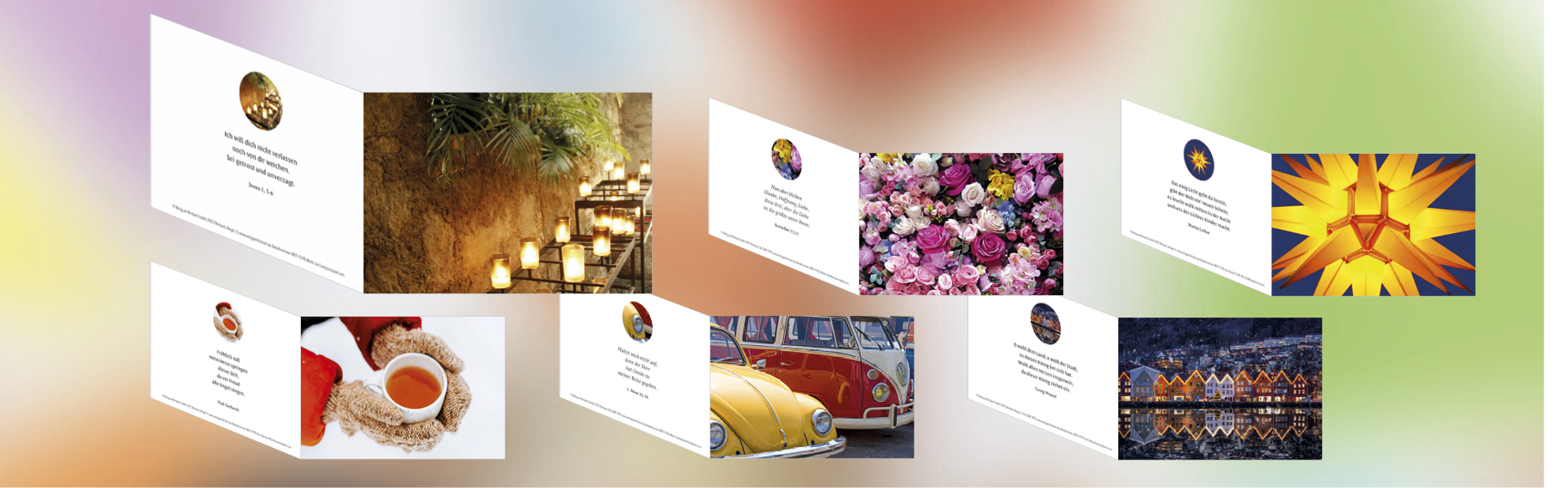 Wir bieten eine große Auswahl schön gestalteter christlicher Karten mit Sprüchen und Motiven in unserem Verlag und Shop