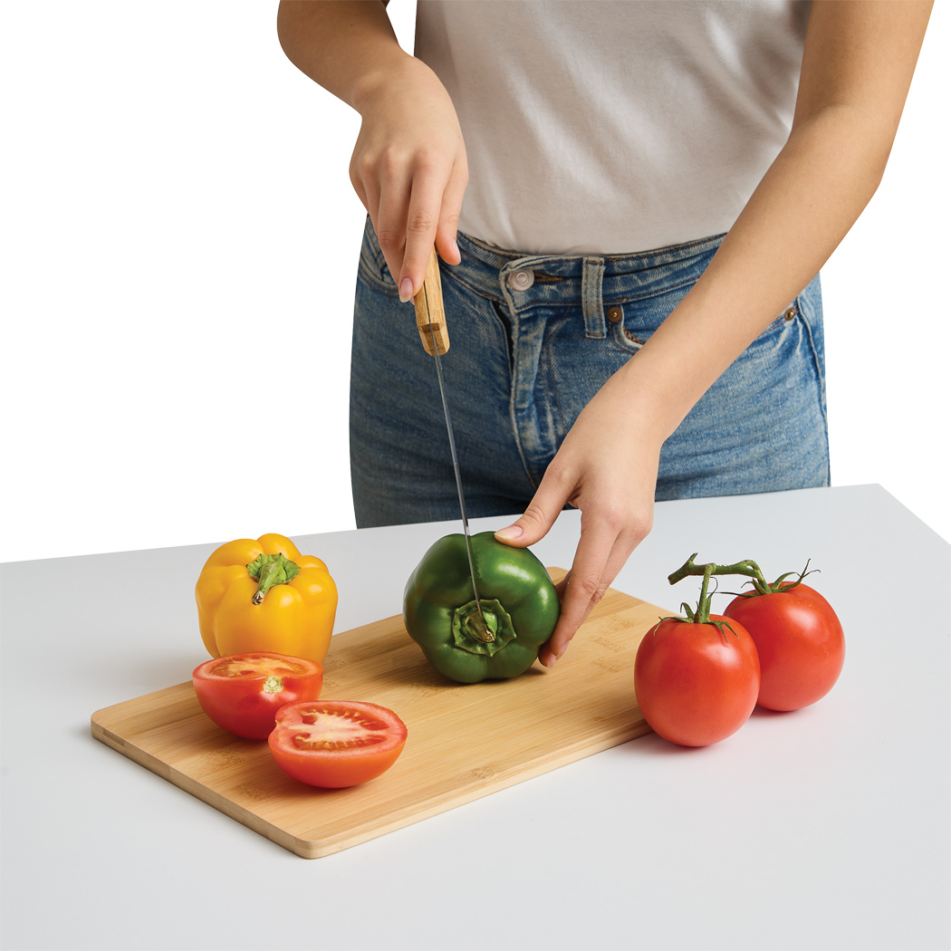 Bambus ist zudem härter und zugleich weniger porös als viele traditionelle Holzarten, was die Bildung von Schnittfasern und Rillen minimiert. Dies vermindert die Ansammlung von Bakterien und sorgt für eine hygienische Nutzung im Alltag. Die glatte Oberfläche nimmt kaum Feuchtigkeit auf, quillt nicht und bleibt formstabiles – wichtige Eigenschaften, die besonders beim Schneiden von feuchten Lebensmitteln wie Tomaten oder saftigen Obstsorten von Vorteil sind.