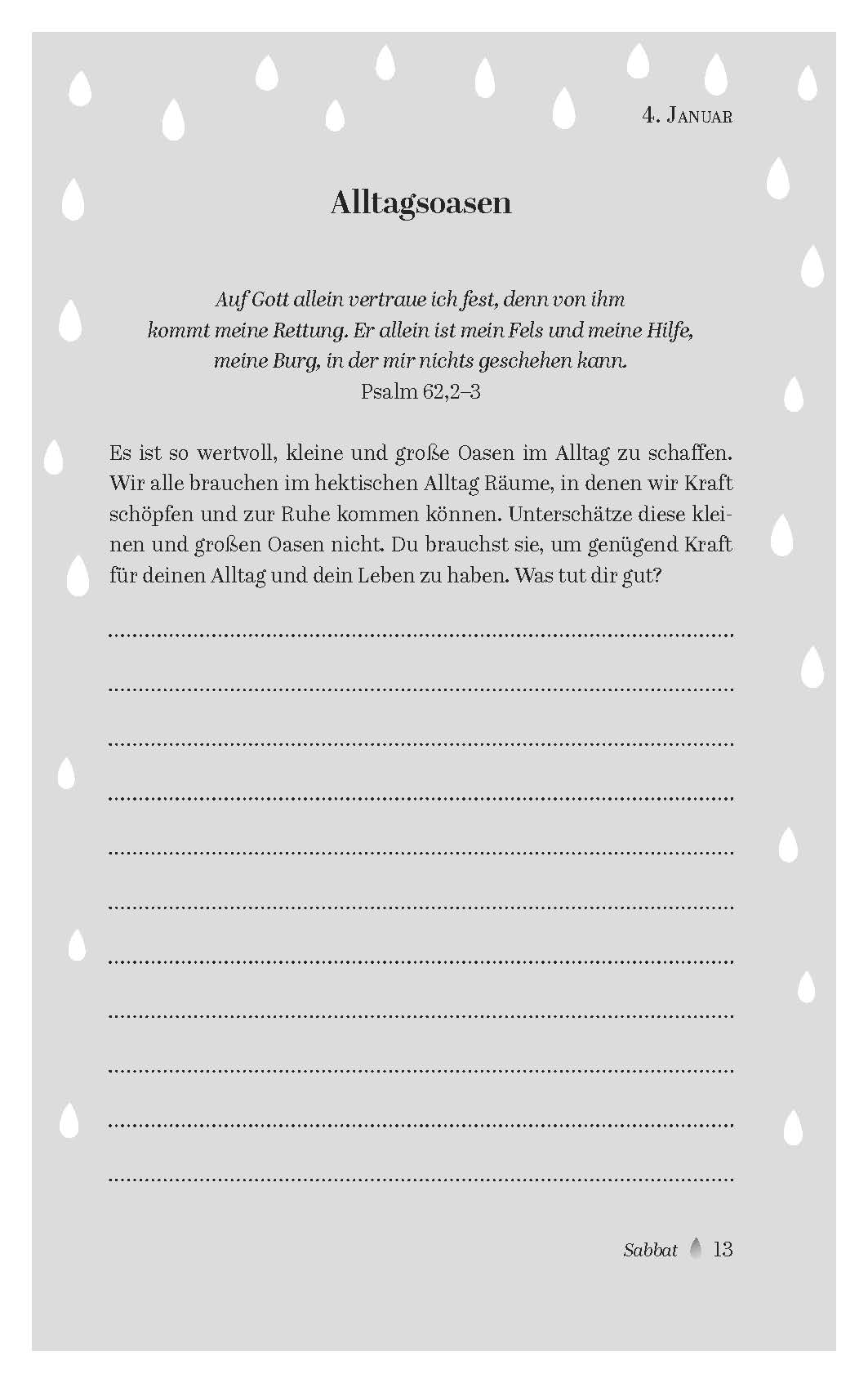 Liebevoll arrangierte, gut lesbare Kurztexte und farbige Akzente machen das Blättern leicht. Die kompakten Einheiten eignen sich für spontane Lese-Momente, kleine Andachten und Gesprächseinstiege.