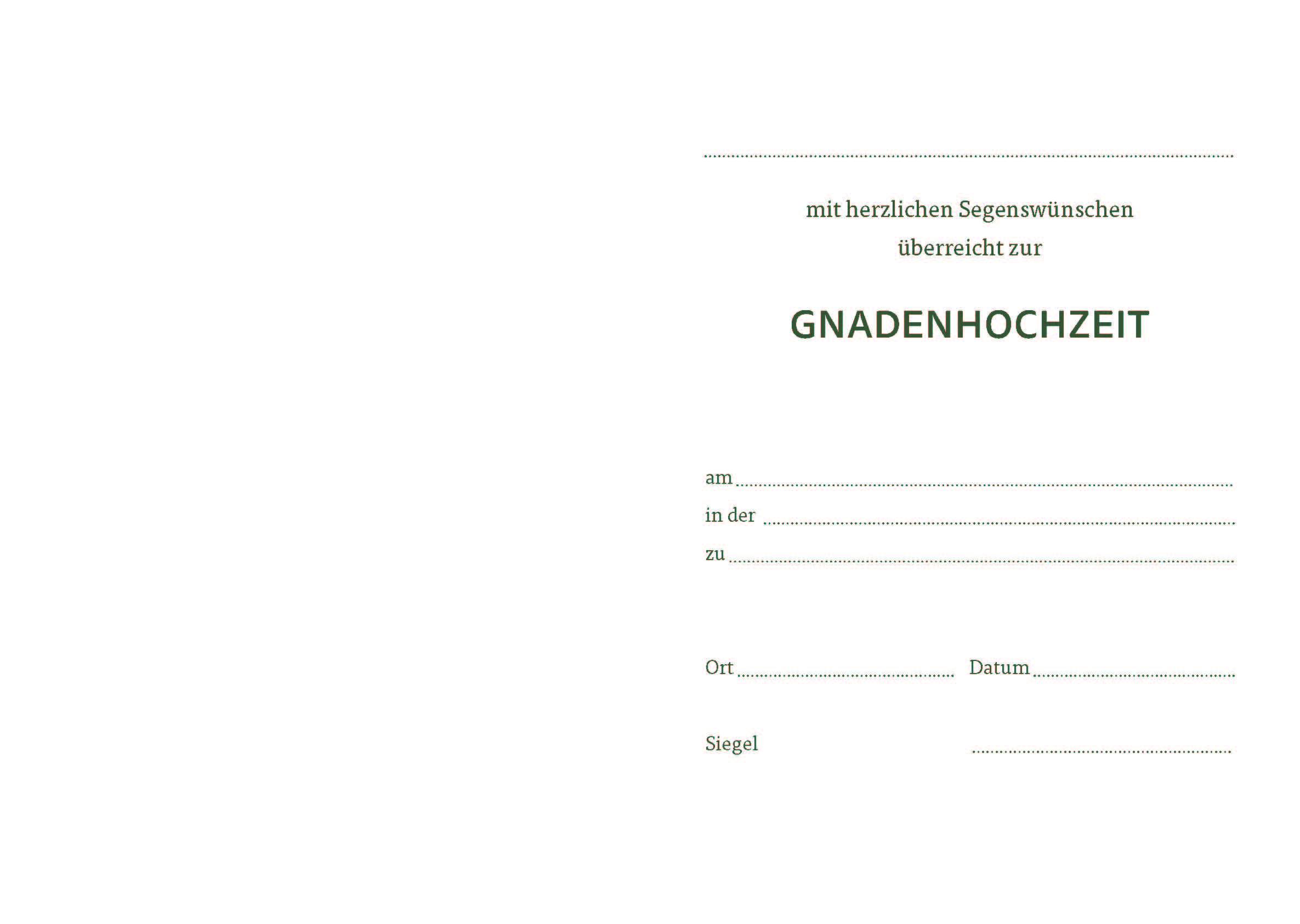 Unsere exklusiven Urkunden zur Hochzeit und zum Hochzeitsjubiläum haben zusammengeklappt ein DIN A5-Format. Es gibt sie blanko oder mit verschiedenen Eindrucken. Die Urkunde ohne Eindruck kann mit einem Fineliner, Kugelschreiber, Tintenstrahl- oder Laserdrucker beschriftet werden.