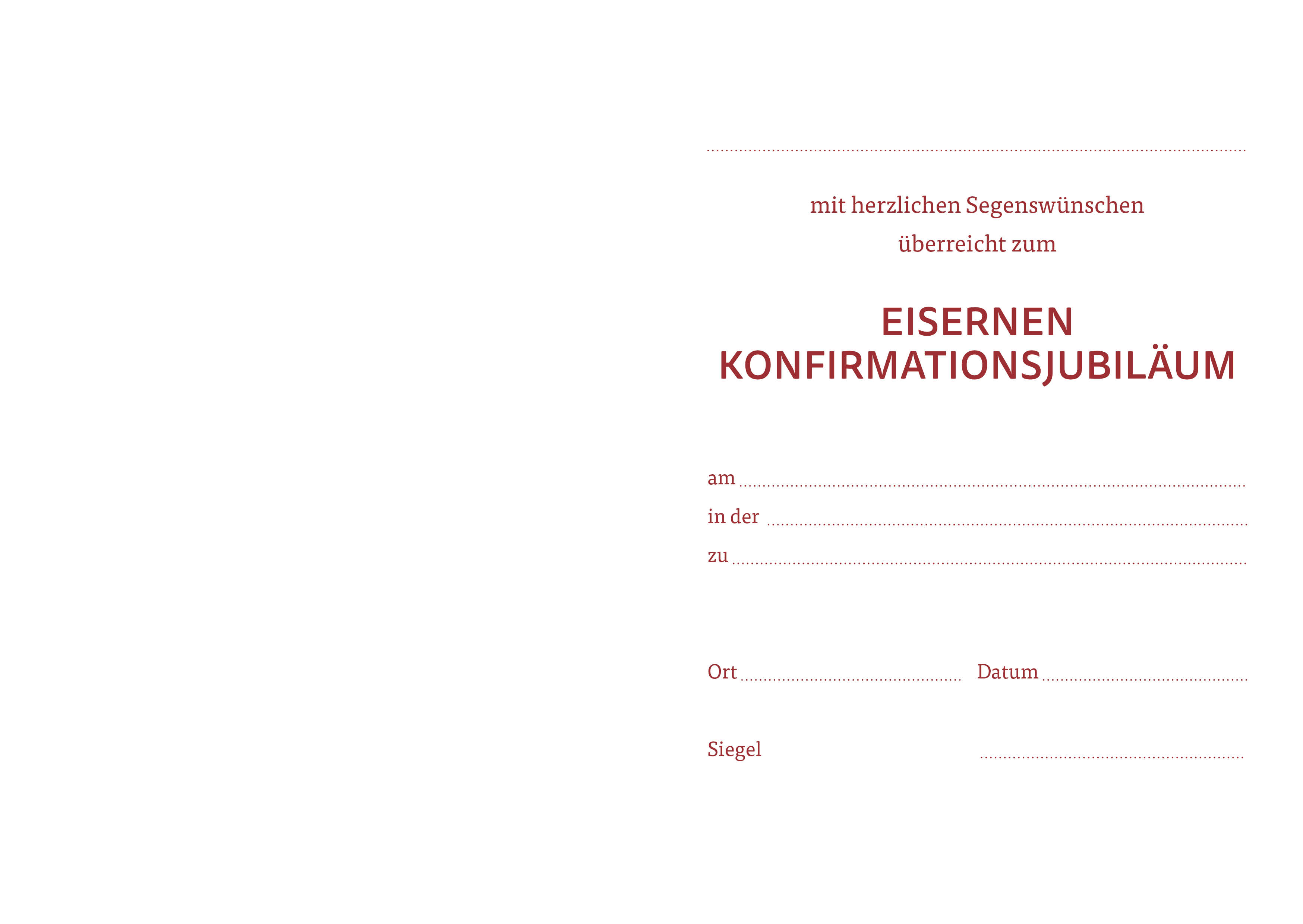 Konfirmationsjubiläum haben zusammengeklappt ein DIN A5-Format.