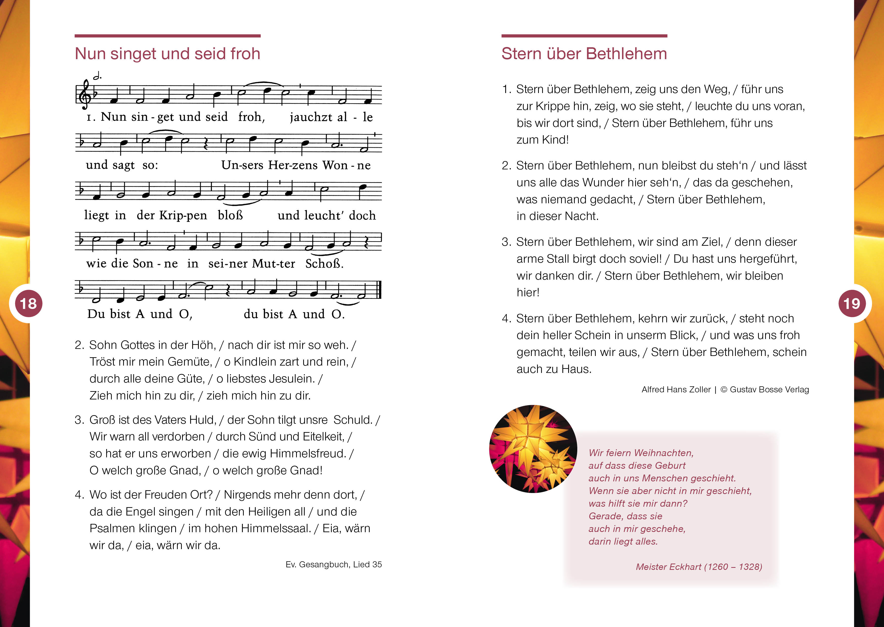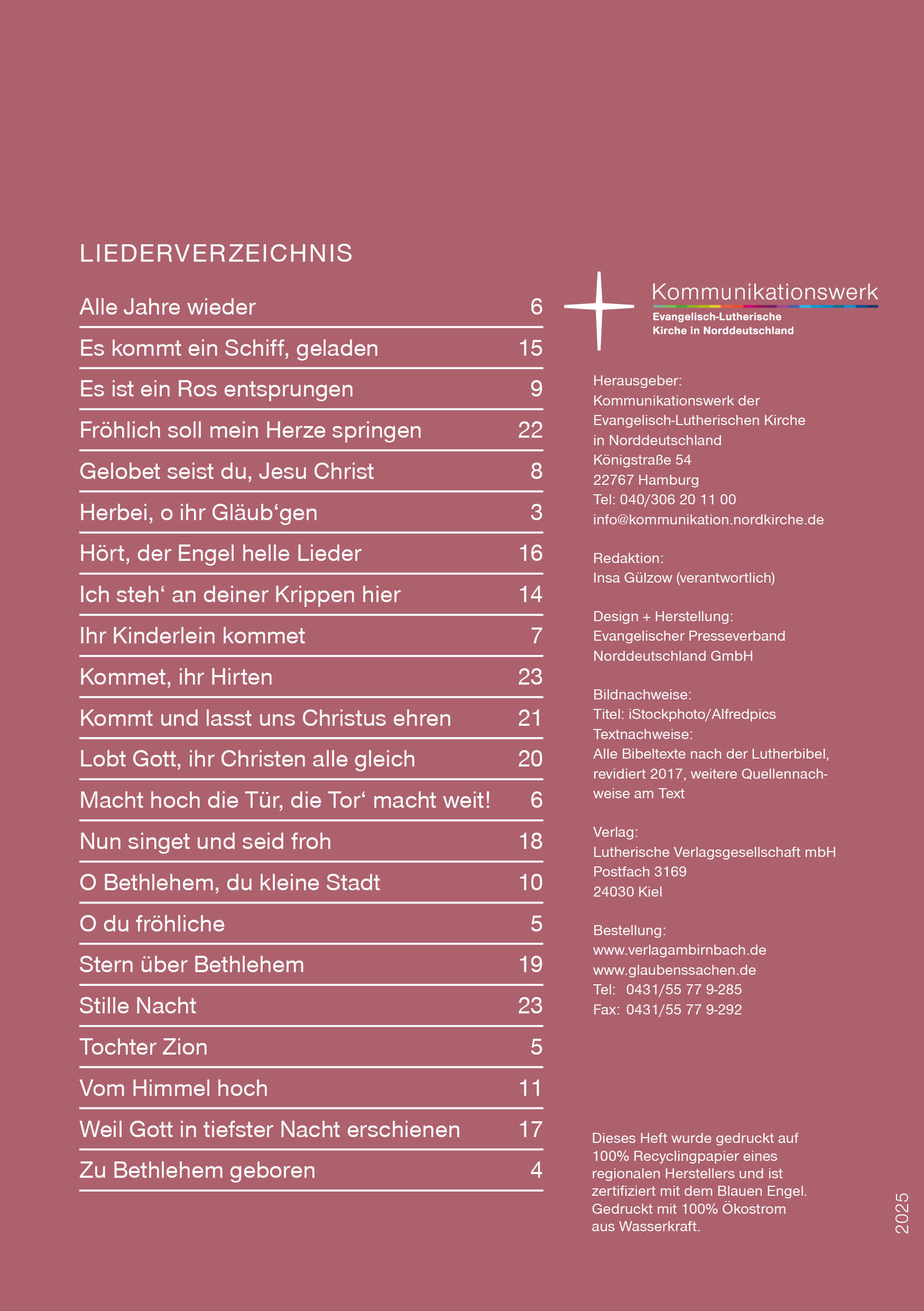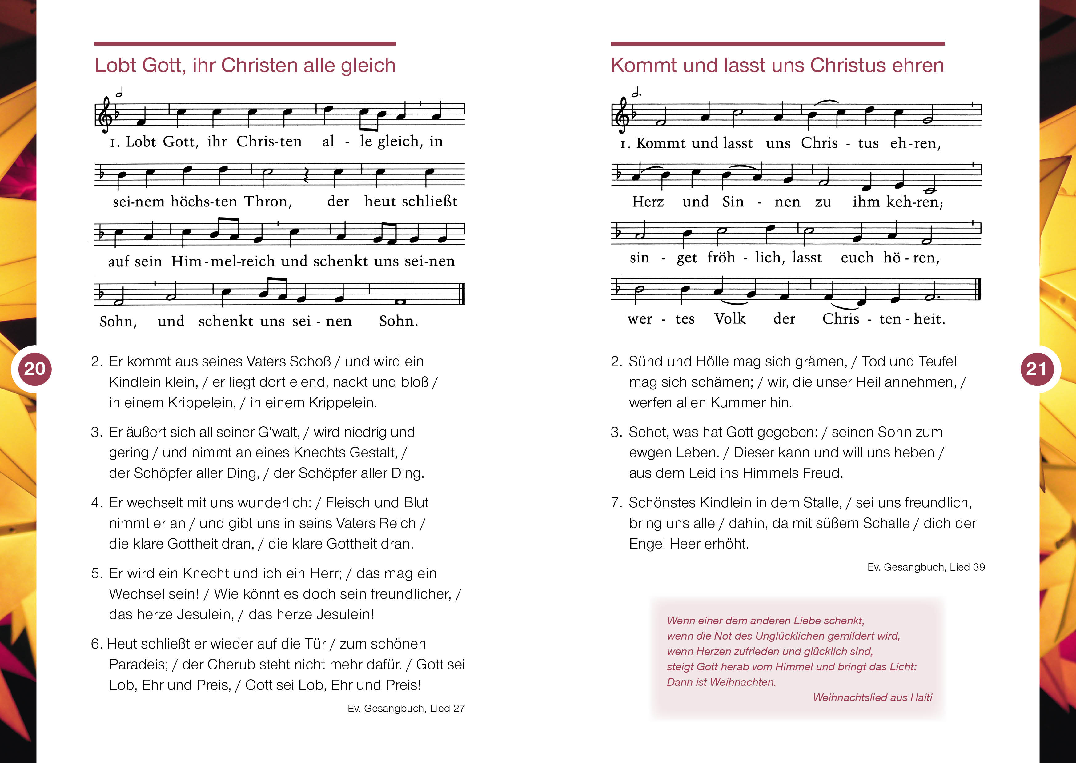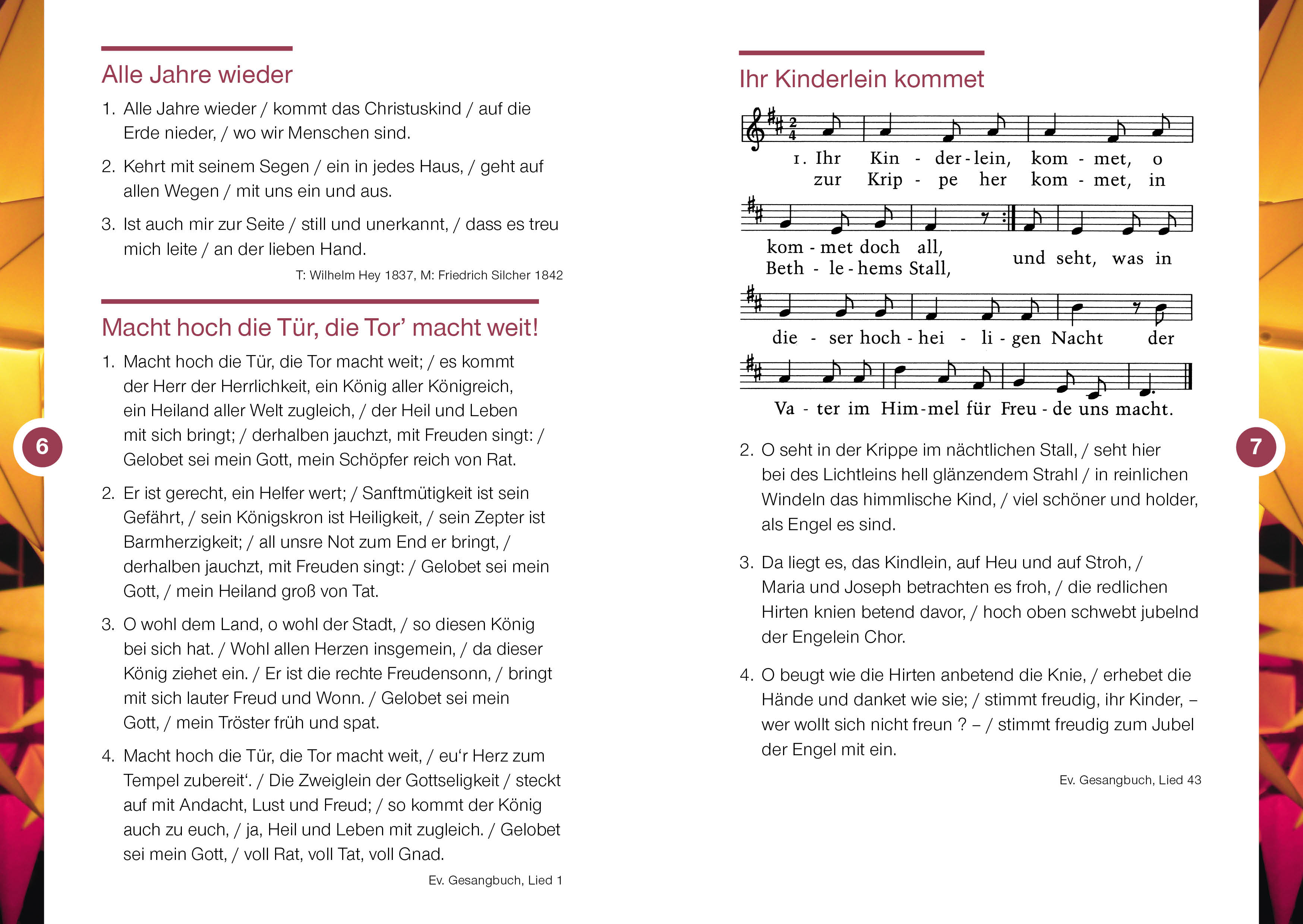 Das Liederheft enthält die bekannten Weihnachtslieder der Weihnachtsgeschichte, Bilder und Texte. Sie können das Heft nicht nur in den Gottesdiensten einsetzen, sondern es ebenso an Gemeinde- oder