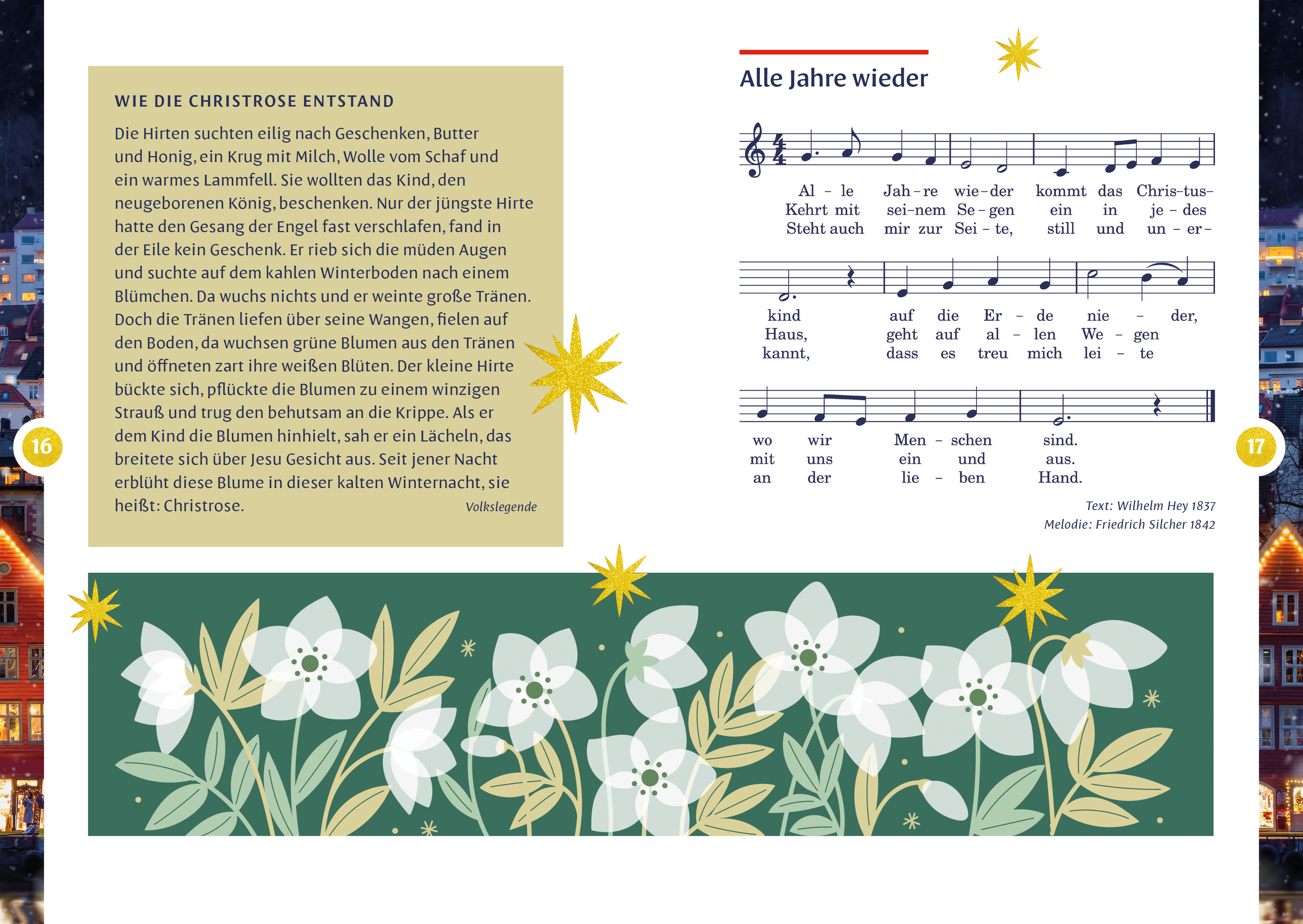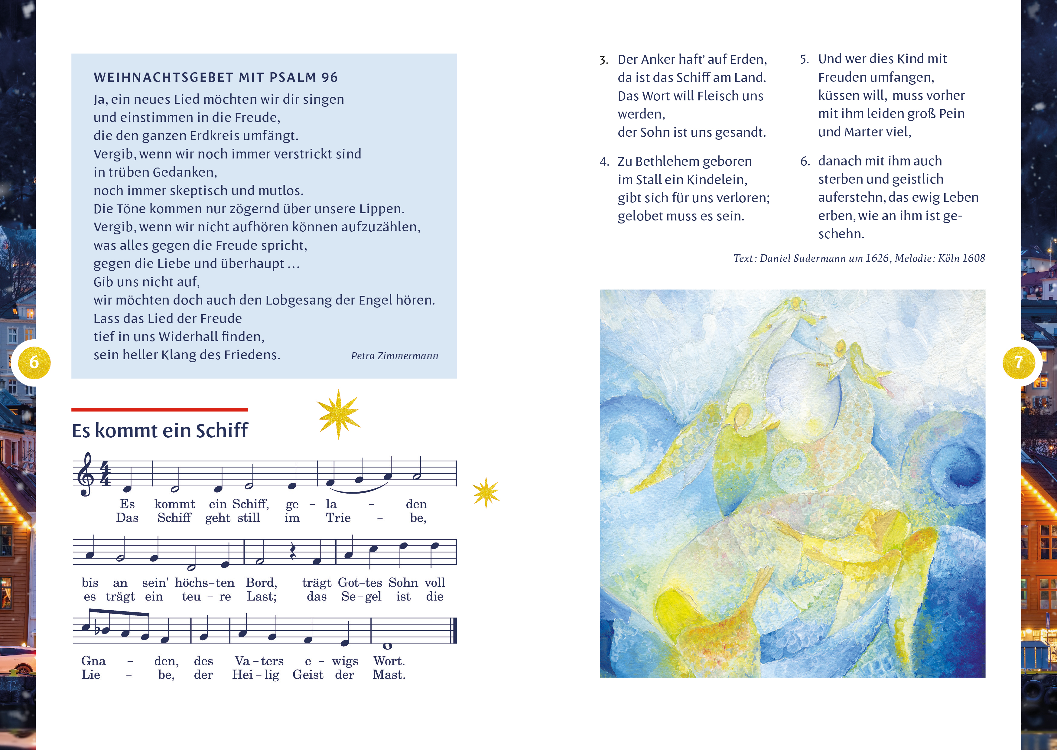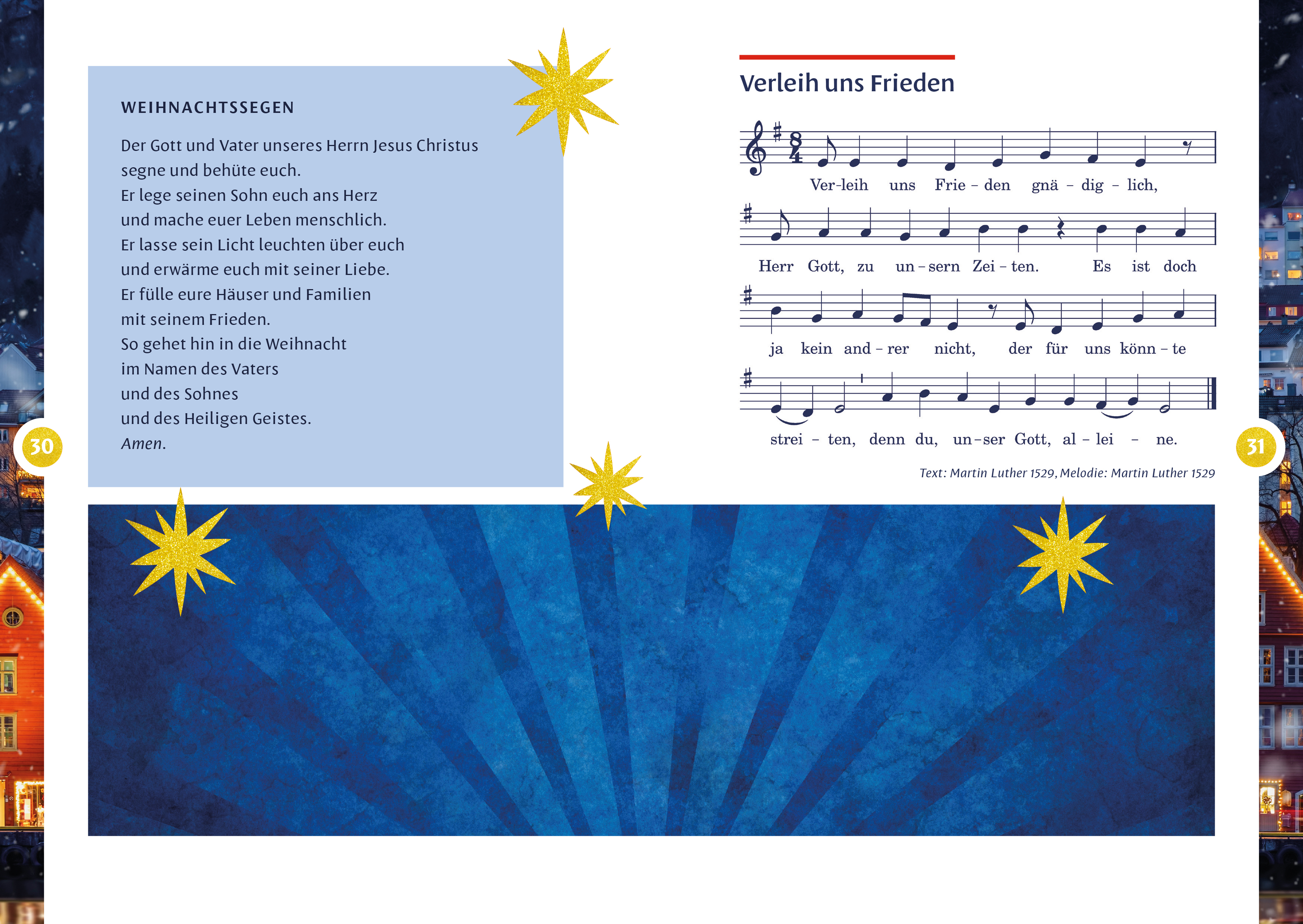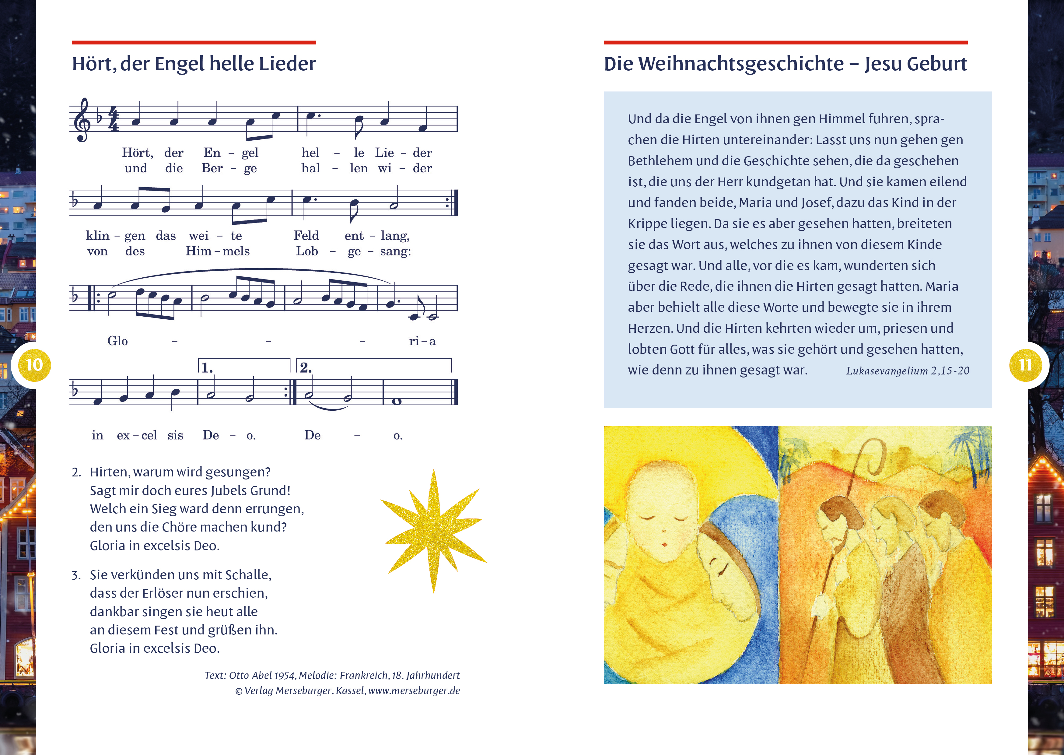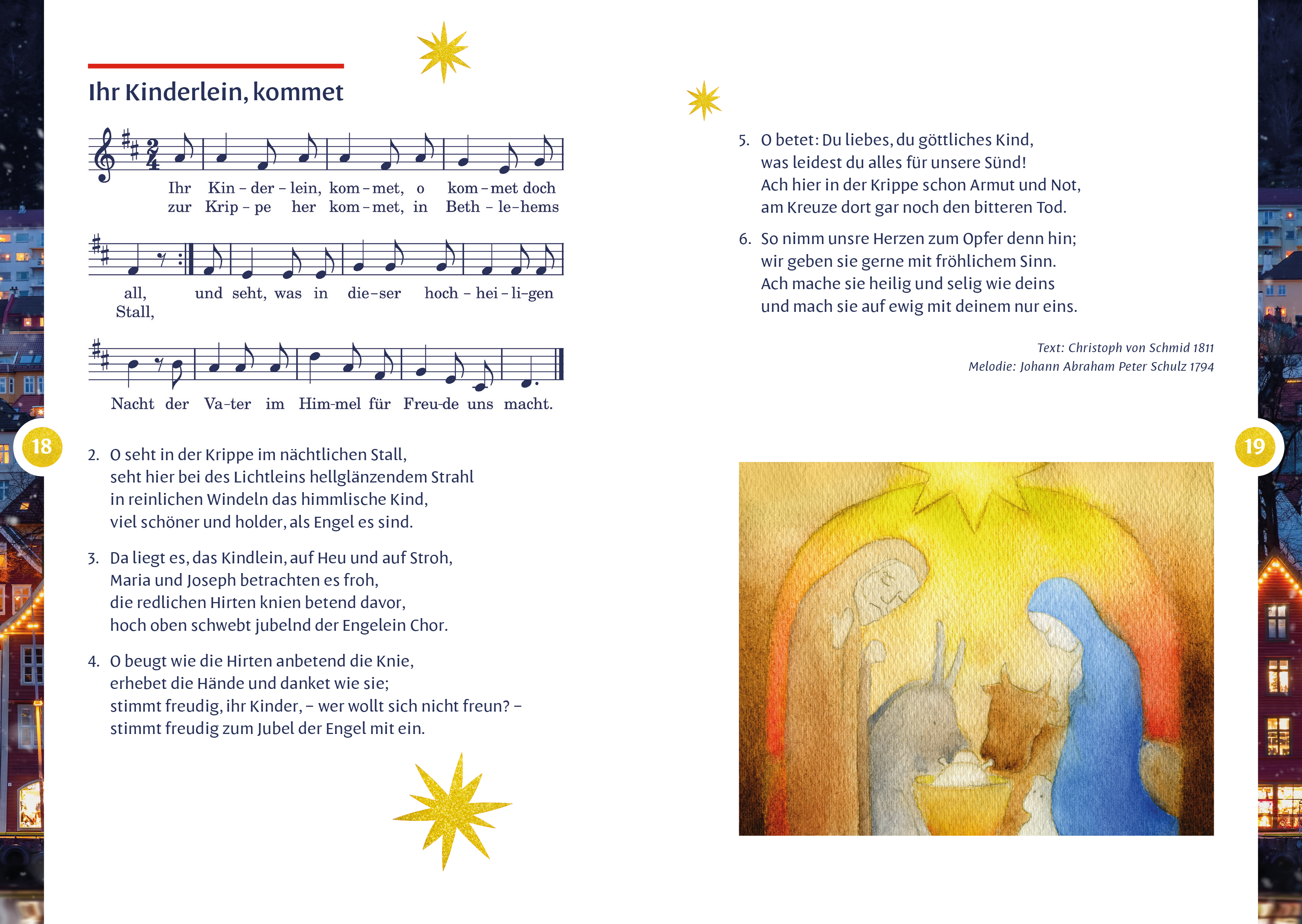 Das Liederheft enthält die bekannten Weihnachtslieder der Weihnachtsgeschichte, Bilder und Texte. Sie können das Heft nicht nur in den Gottesdiensten einsetzen, sondern es ebenso an Gemeinde- oder