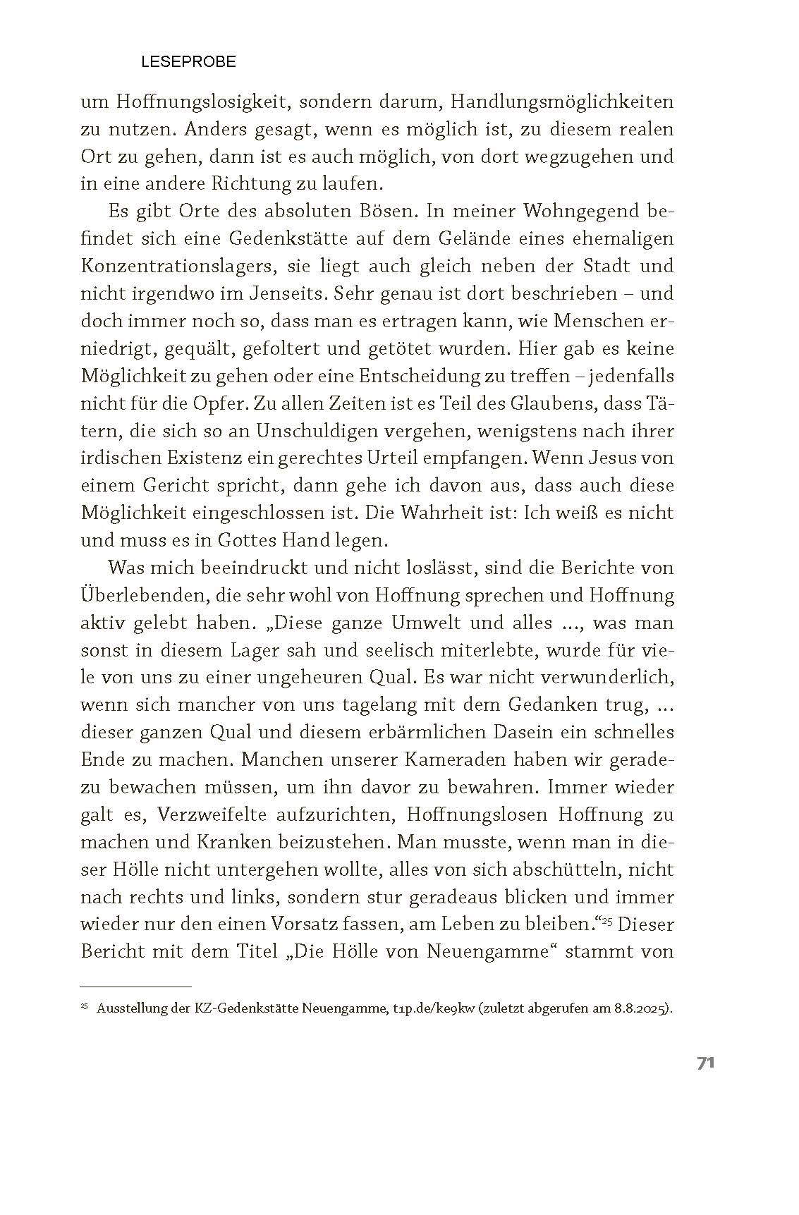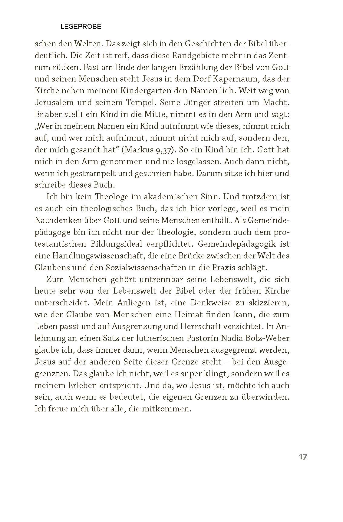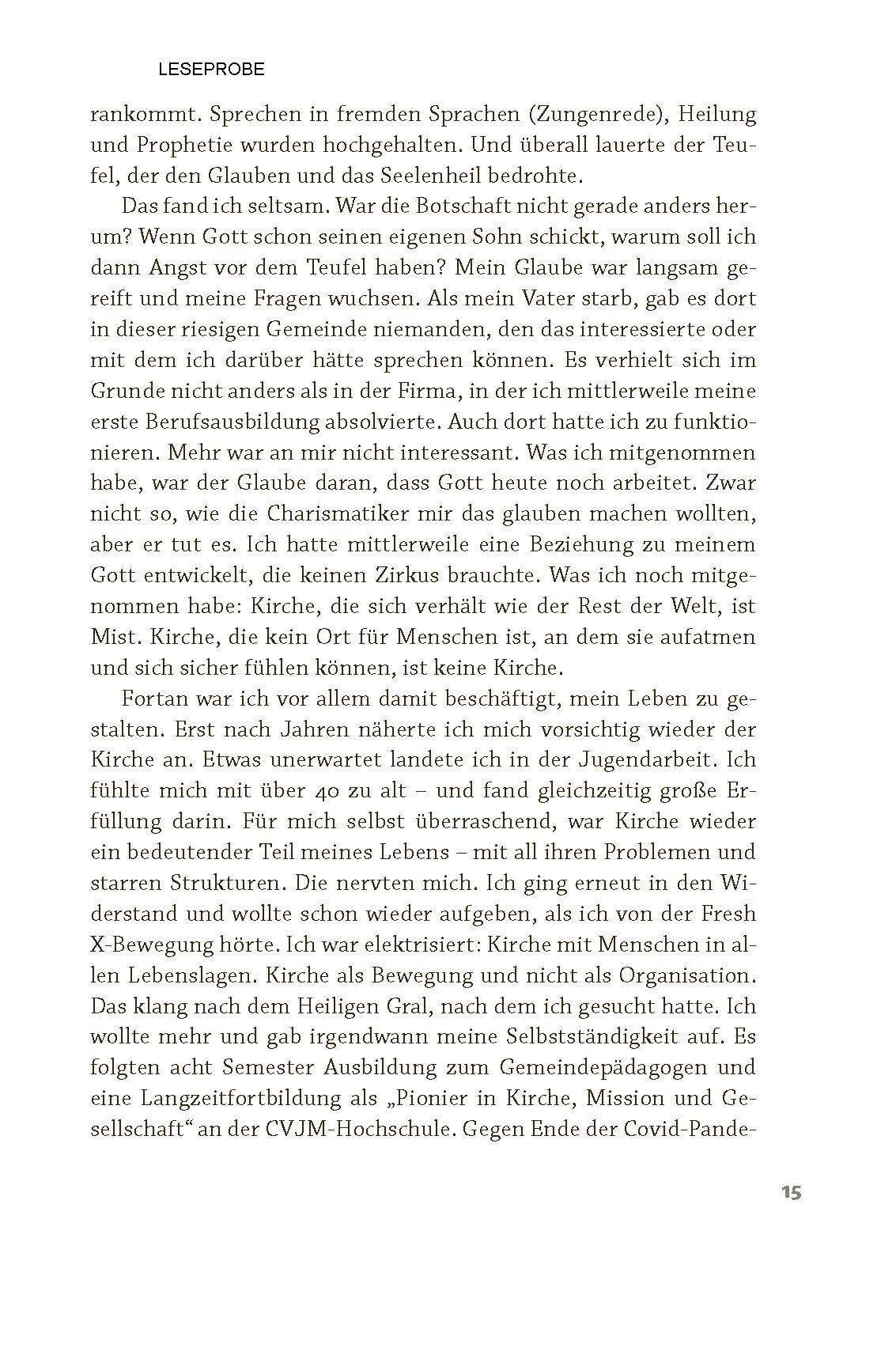 Warum sollten wir heute noch glauben? Wie findet man - erneut oder erstmals - eine Heimat in diesem Glauben? Und wo findet Glaube Heimat in einer Welt, die eher heimatlos wirkt als alles andere? Dirk Kähler macht sich auf einen Weg mit den Menschen, denen er im Laufe seines Lebens begegnet ist und die auf der Suche nach Gott waren und sind. Mit biografischer Ehrlichkeit und theologischer Tiefe führt der Autor durch seine eigenen Grenzerfahrungen: Kindheit im Glauben, Abkehr von kirchlichen Engführungen, Neubeginn in neuen Kontexten. Dabei zeigt er, wie der Glaube nicht Mauern baut, sondern sie einreißt - und neue Räume von Vertrauen, Hoffnung und Mut eröffnet. Sein Buch gibt keine leichtfertigen Antworten und lädt doch mit offenen Armen ein zu einem Glauben, der nichts muss, außer sich selbst kritisch zu hinterfragen. Dafür taucht er unter anderem in die biblischen Schöpfungs- und Exoduserzählung ein und erschließt Raum für Zweifel und Fragen. Er benennt Glaubenshindernisse und Wege, sie zu überwinden, zeigt auf, wie Kirche und Gemeinschaft im Glauben neu gedacht werden können und wie Spiritualität, Glaube und Gemeinschaft Proviant für uns persönlich und die großen Veränderungen unserer Zeit werden. Ein Buch, das vor Freude am Glauben sprüht und neu dazu einlädt. "Wie wäre das, wenn wir mit der Brille der Verbundenheit, der Lebens- und Glaubensfreude und dem Ernstnehmen unserer schönen und schrecklichen Wirklichkeiten eintauchen würden - in die Geschichten der Bibel, in Möglichkeiten von Kirche und in Lebensdeutung überhaupt? Schön wäre das, so schön! Danke, Dirk Kähler, dass du mir diese Brille aufsetzt." (Katharina Haubold, Coordinator for Evangelism and Missionary Networks, VEM)| Artikelnummer: | 7615-7091 |