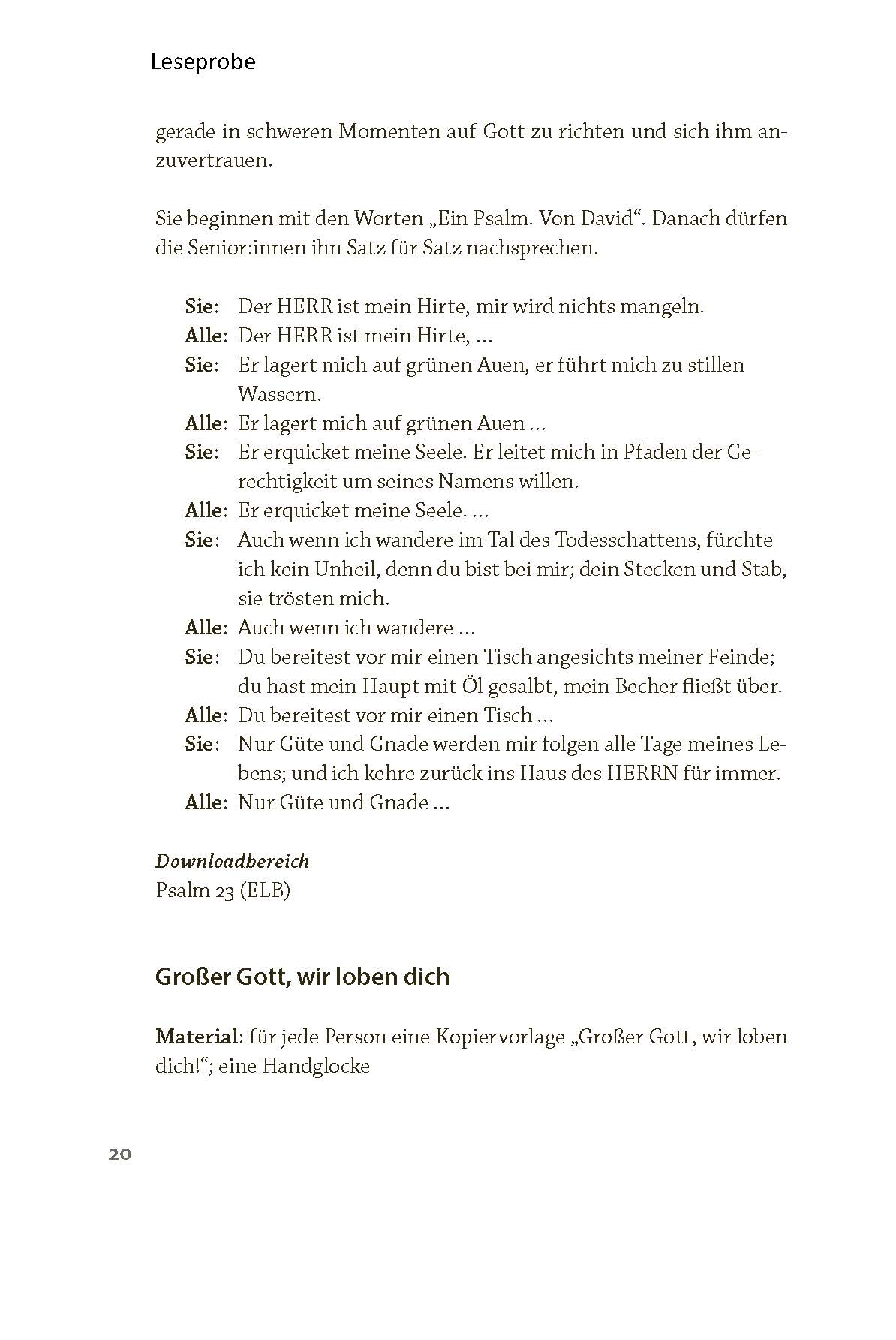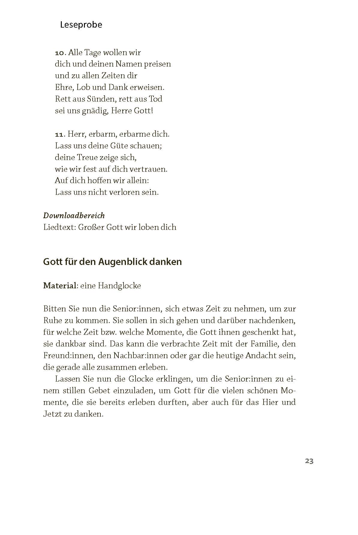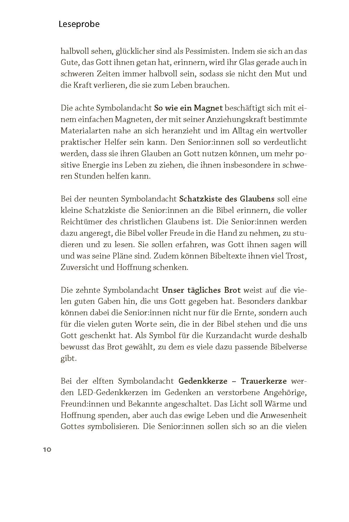 Die Texte eignen sich als Einstieg für Kurzandachten in Klinik, Pflegeeinrichtung oder Hausbesuch – kombiniert mit einem Gebet und einem Segenswort.