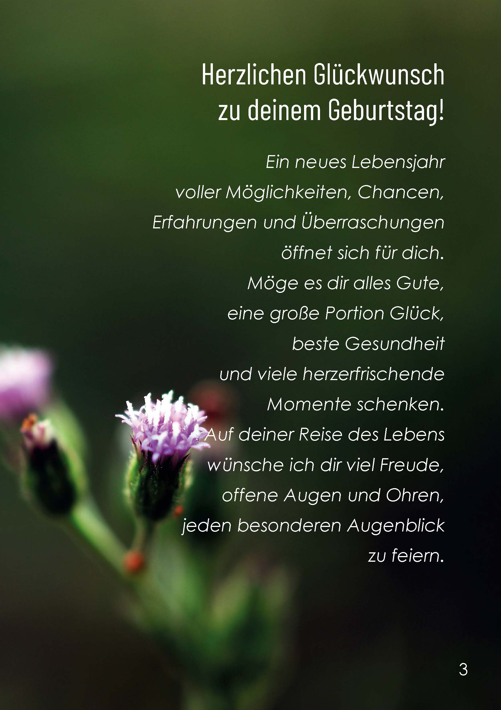 Herzlichen Glückwunsch! Möge dein neues Lebensjahr dich mit Gesundheit, Gelassenheit und vielen kleinen Wundern beschenken.